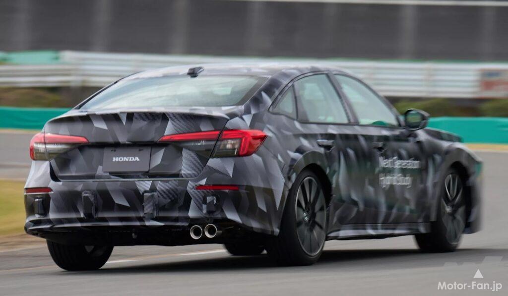 このテスト車両は現行シビックのボディを採用しているが、フロントエンドが明らかに大きく、バンパーデザインが角張っており、オーバーハングが長くなっている。