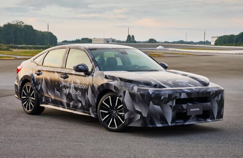 この新しいプラットフォームでテストされている車両の中には、公式写真でプレビューされているカモフラージュされたシビックらしきプロトタイプがある。