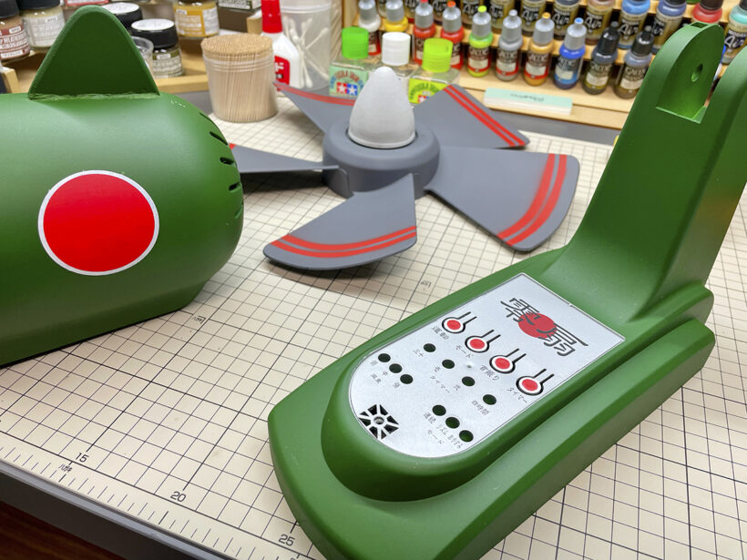 DIY・メンテナンス カスタム扇風機名付けて「零扇」。ロゴもいいカンジ【連載・魅せプラモ部 Vol.24】【写真・6枚目】 見ての通り、元々は白くていかにも家電といった雰囲気の扇風機。羽根もハーフクリアで完成形からは想像も付きません。 プロペラの頭は扇風機にはなく、パテでざっくりと成型した後、扇風機を回しながらヤスリを当てて、キレイな円錐状に。 操作系のスイッチへと繋がる配線類も一度全部外さないとカバーがバラせないことが発覚。配線のハンダを溶かすことに。 後方のモーターカバーには、零戦の尾翼をモチーフとした部品を追加。塗装で表現したヤレ具合はさすがPAPAN部長です。 PAPAN部長 スタイルワゴンをはじめ、様々なクルマ雑誌で活躍する大阪在住酒好きクルマ好き楽しいこと好きなプロカメラマン。なぜかミニ四駆のタトゥーを入れている。現在の愛車は1993年式のUSトヨタ・ハイラックス。放置車両の撮影がライフワーク。写真集「STILL ALIVE」発刊や個展なども開催する。 この画像の記事を読む