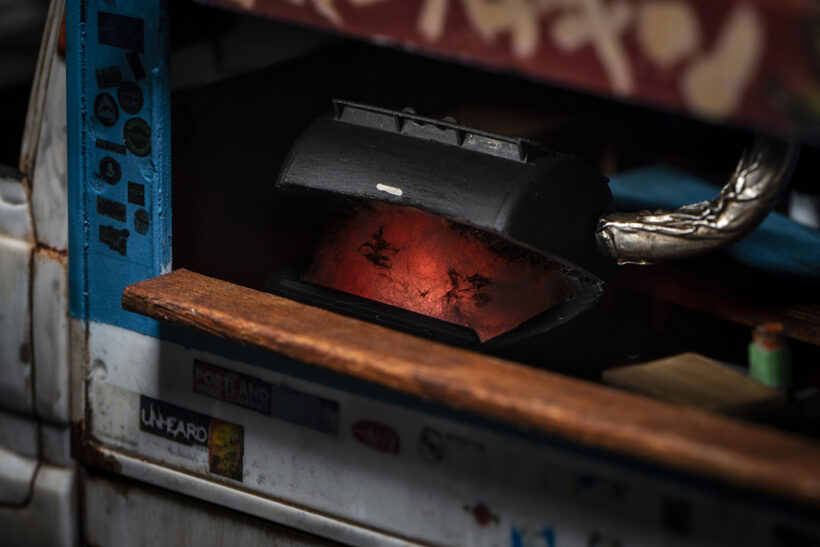 DIY・メンテナンス 大阪ミナミの人気店が復活!? オーナー愛用のスケボーまで再現したキッチンカーがリアルすぎ!! 【連載・魅せプラモ部 Vol.25】【写真・6枚目】 モンティゴベイ号のベースは、アオシマが販売している移動販売車のプラモだが、ほとんどの部分は切った貼ったで大改装。 これが実際にミナミの街中で人気のあったジャークチキンのキッチンカー「グリルモンティゴベイ」。残念ながら現在は閉店。 備え付けた木製テーブルは、味のある雰囲気もリアル。さらにオーナーのスケボーに貼られたステッカーまでも忠実に再現。 ジャークチキンの焼き台は、内部にLEDを仕込み、火が入っている状態を演出。見てるだけでいい匂いすらしてきそうな作り込みです。 PAPAN部長 スタイルワゴンをはじめ、様々なクルマ雑誌で活躍する大阪在住酒好きクルマ好き楽しいこと好きなプロカメラマン。なぜかミニ四駆のタトゥーを入れている。現在の愛車は1993年式のUSトヨタ・ハイラックス。放置車両の撮影がライフワーク。写真集「STILL ALIVE」発刊や個展なども開催する。 この画像の記事を読む
