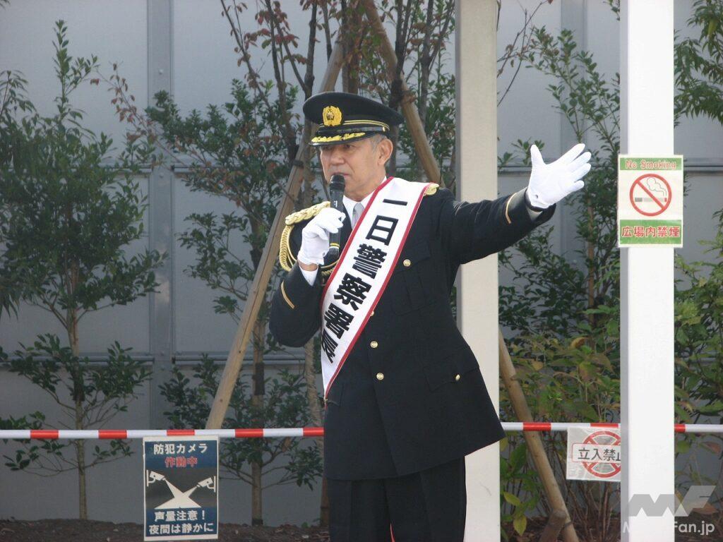 10時30分に八王子警察署の四郎園文明署長の挨拶からキャンペーンイベントがスタート。その後、宮城光氏への1日署長委託式が行われた。