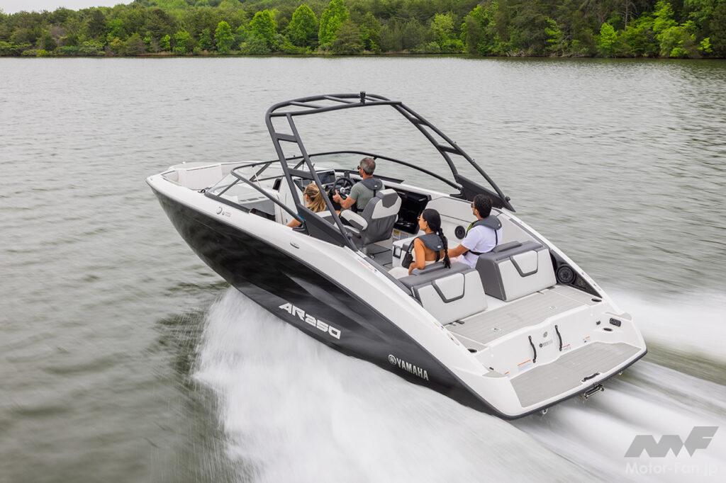 2026年のスポーツボートのラインナップは、ウェイクサーフィンなどウェイクスポーツを楽しむための装備を充実させた「255XD(税込2450万8242円)」、様々なマリンスポーツやクルージングなどマルチに対応する「AR250(税込1691万8242円)」、そしてコンパクトな艇体ながら優れた走行性能と居住性能を併せ持つ「AR195(税込1021万7724円)」の3種だ。