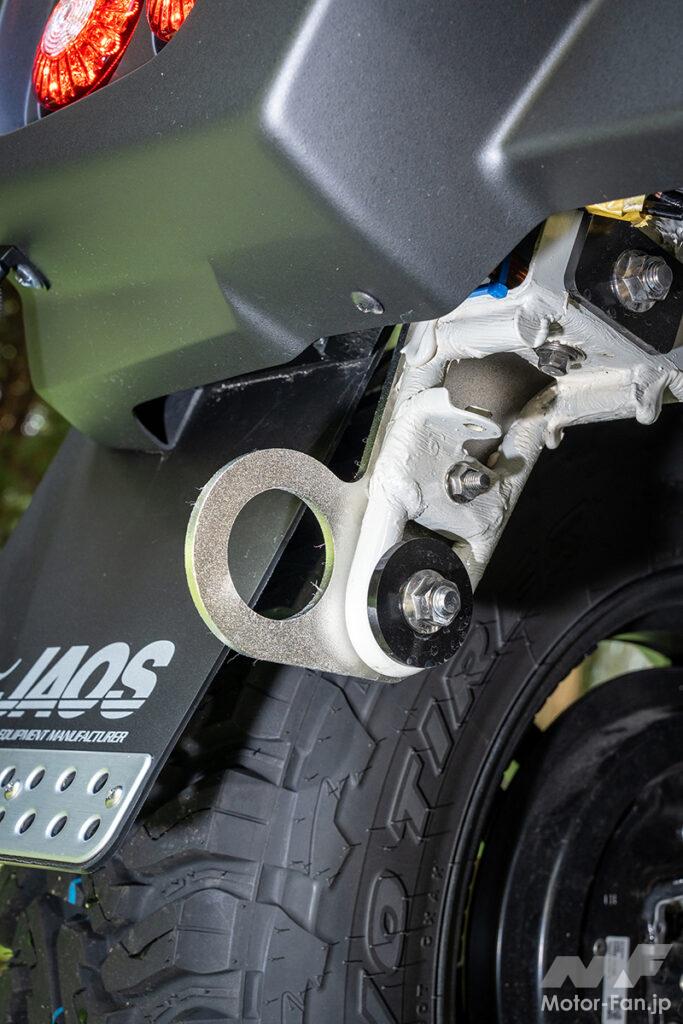 エクステリアには、デモカーに装着されるスタイリッシュな前後スポーツカウル(リアはプロトタイプ)やスポーティなフロントグリルの他、LEDランプ搭載のボンネットディフレクター、ワイルドなブッシュバーなどを用意。もちろん機能系も充実。ボディ下まわりと足まわりを保護するステンレス製プロテクター各種、開発中となるリフトアップキットと、本格的なクロカンスタイルを実現できる多彩なラインアップを揃えている。また、新設計の前後バンパー、スチールパイプを使用したサイドステップ、マフラー、アクセサリーパーツなどなど、開発中のものを含め、ノマド対応アイテムは順次拡充される予定。今後の動向からも目が離せない。