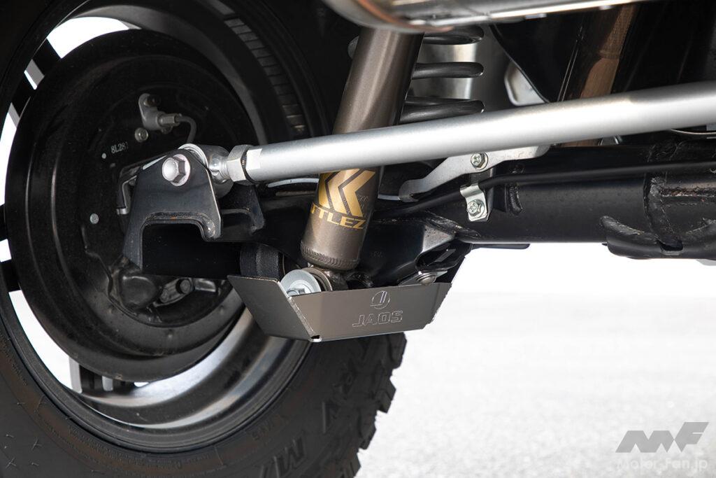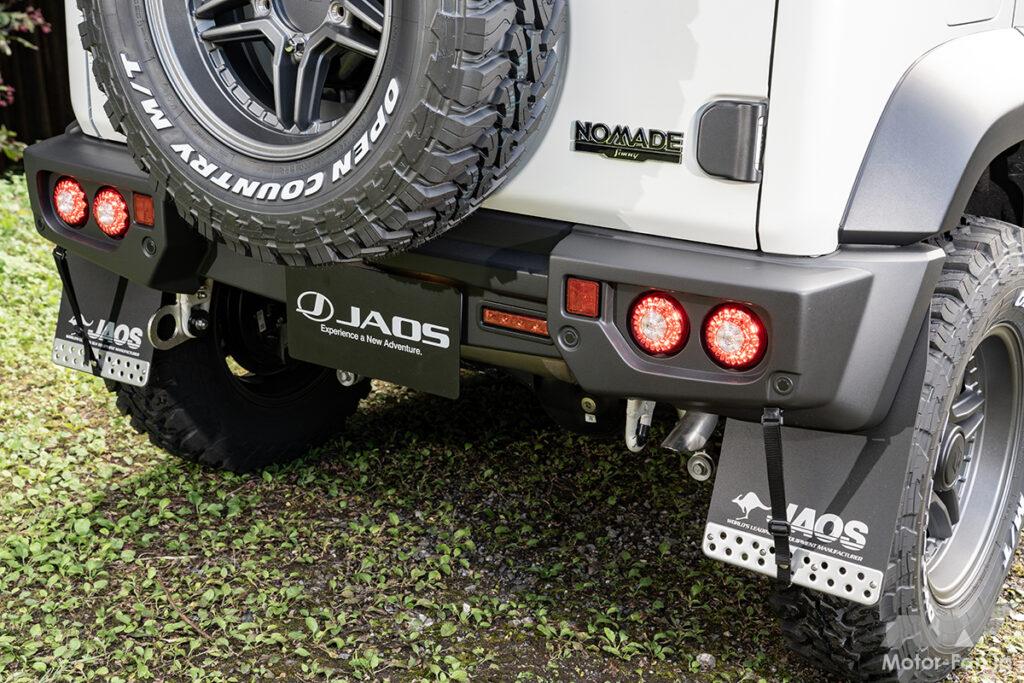 エクステリアには、デモカーに装着されるスタイリッシュな前後スポーツカウル(リアはプロトタイプ)やスポーティなフロントグリルの他、LEDランプ搭載のボンネットディフレクター、ワイルドなブッシュバーなどを用意。もちろん機能系も充実。ボディ下まわりと足まわりを保護するステンレス製プロテクター各種、開発中となるリフトアップキットと、本格的なクロカンスタイルを実現できる多彩なラインアップを揃えている。また、新設計の前後バンパー、スチールパイプを使用したサイドステップ、マフラー、アクセサリーパーツなどなど、開発中のものを含め、ノマド対応アイテムは順次拡充される予定。今後の動向からも目が離せない。