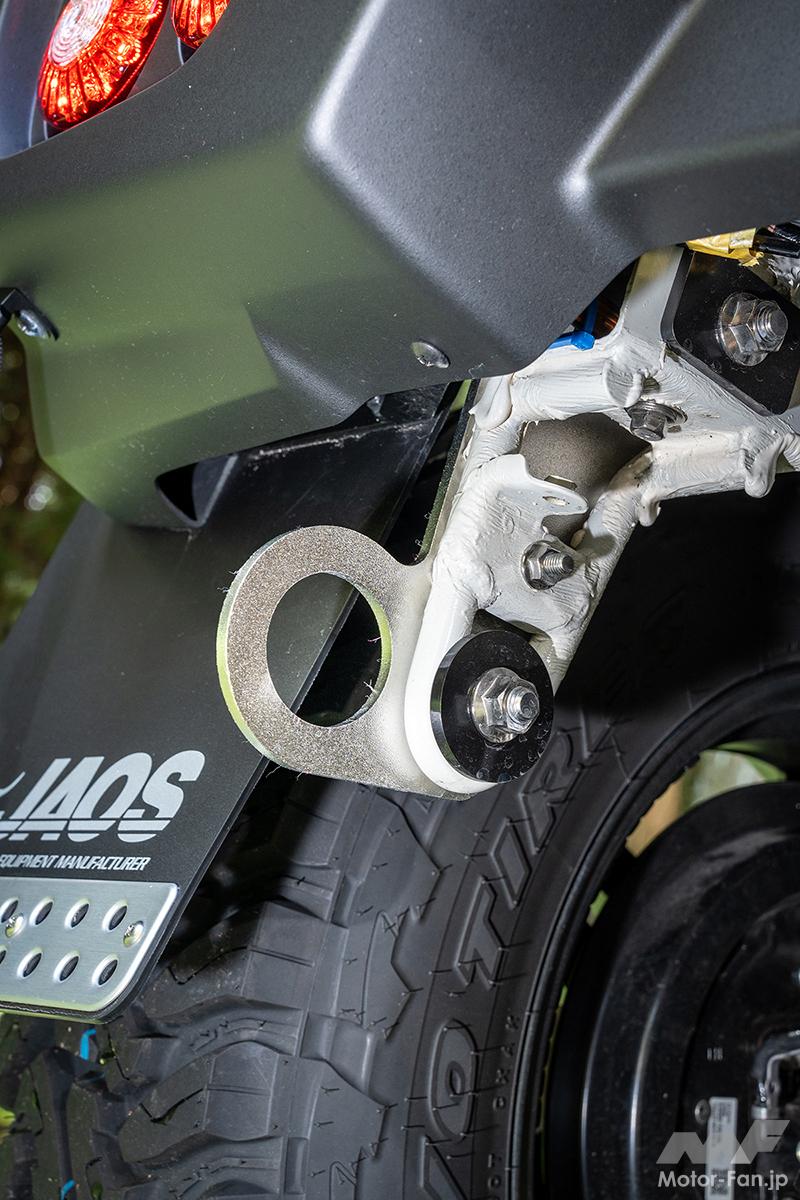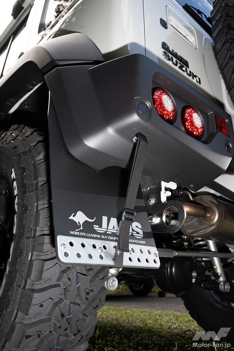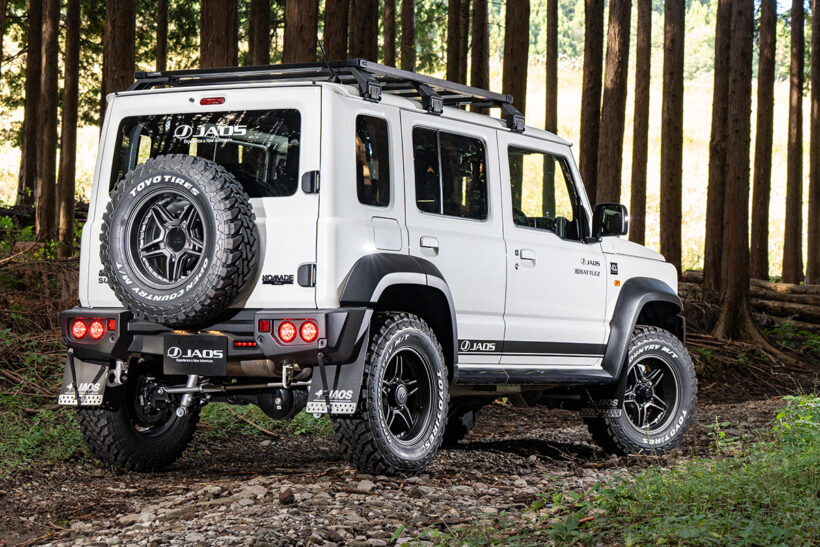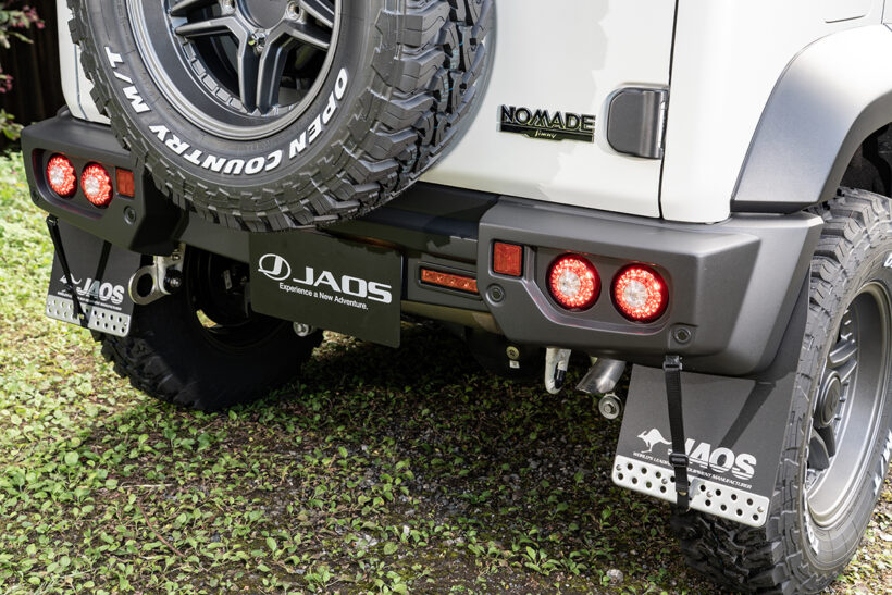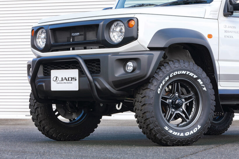 アイテム(カスタム) スポーツカウルで表情凛々しく!【JAOS】から登場した『ジムニーノマド』は本格クロカンスタイル!!【写真・3枚目】 クロカンテイストを高めるデザインで、軽快なフェイスを演出するスポーツカウル。純正フェンダーとの相性もバッチリ。 JAOS【Jimny NOMADE】 デモカーに装着されるリア用スポーツカウルは、現状プロトタイプ。専用の丸形テールが付属し、リアフォグにも対応予定だ。 大きな開口部が目を惹く純正交換タイプのフロントグリル。カーボン調やマットブラック塗装済み、タフブラック塗装済みも用意。 デモカーの足元には、躍動的で力強い足元を演出するEXCEL JX3をセット。リブを設けたスポークが、抜群の立体感を発揮する。 フロントスポーツカウル専用設計のスキッドプレート。ショットブラストと電解研磨が施されたタフ仕様。 貼るだけでボンネットを保護できる、耐久性と耐候性に優れたプロテクター。ドレスアップ効果もバッチリ。 足まわりは、各部補正パーツもセットになったBATTLEZリフトアップセットAJコンプリートのプロトタイプを装着。 四駆らしさを強調するフロント用マッドガードもリリース開始。写真はプロトタイプのリアスポーツカウル専用モデル。 プレートタイプのトランスファーガードは、2.5㎜厚のステンレス製。表面にはキズが目立たない加工が施されている点もポイント。 デモカーには未装着だが、ダメージを受けやすいリアダンパー取り付け部をガードするダンパープロテクターも設定される。 デモカーには樹脂製フット採用のフラットラックtype-Bを装着。風切り音を低減するウィンドディフレクターも付属。オプションパーツも豊富だ。 【ボンネットディフレクター】フロントの迫力を高める3連LEDランプ搭載のボンネットディフレクター。マットブラック塗装済みと未塗装品を選べる。価格:5万2800円~ 【フロントブッシュバー45】純正バンパー対応のブッシュバー45は、ラギッドなイメージを演出するのに最適。装着はボルトオンでOK。価格:4万4000円 【リヤハッチパネル】スペアタイヤを取り外した時の凹凸をカバーできるパネル。未塗装、マットブラック塗装、カーボン調を用意。価格:3万7400円~ この画像の記事を読む