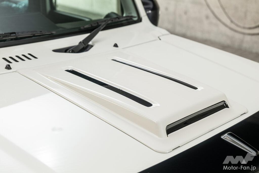 ラブラインシリーズとなる最新作は、街乗りに打ってつけのスタイリッシュなイメージを構築できるラインアップを用意。核となるフロント、サイド、リア、フェンダーは、純正ボディの上からすっぽりと被せるようなカバータイプとなり、ノマドらしい力強さを適度に感じさせながらも、高級感とスポーティさをプラスするデザインを採用。デモカーのようにボディ同色に仕上げれば、都会の街並みにもマッチするスマートなスタイリングを実現可能だ。また、フロントグリルやボンネットフードカバーをはじめ、ワンポイントでも効果的にスタイルアップが可能なアイテムが揃っている点も見逃せない。