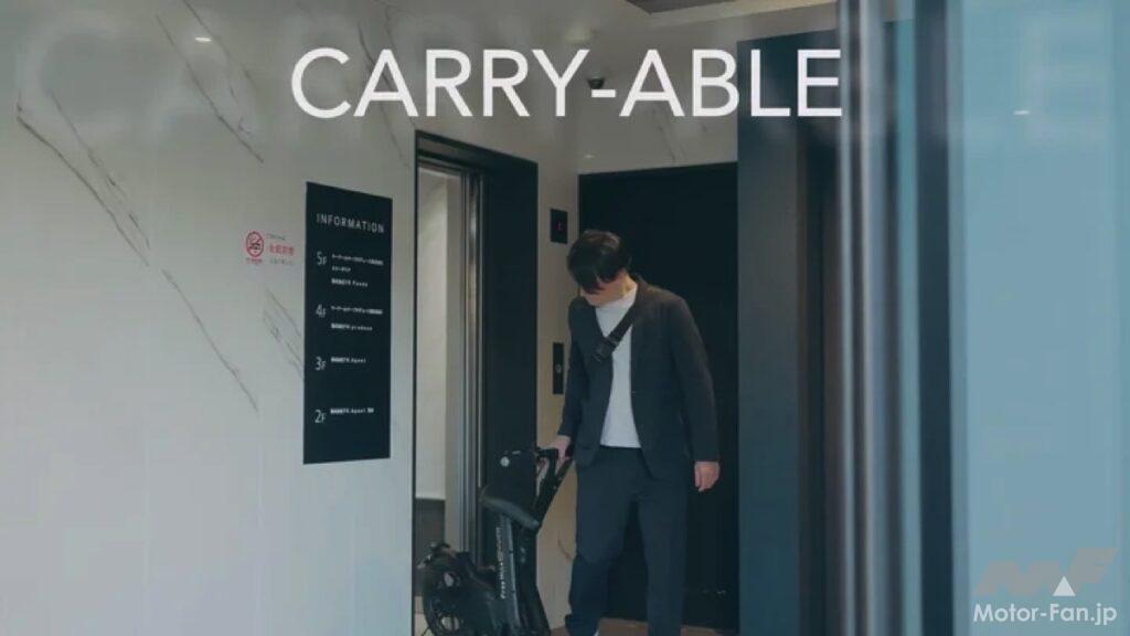 車体を折り畳めばサイズが約半分になり、別売のホイールキャリーを装着すれば、キャリーケースのように引いて運搬することも可能である。堅牢な設計により、ハンマーで叩いても壊れない高い耐久性を実現しており、長期間の使用はもちろん、駐輪場での予期せぬ倒れ込みにも耐えられる頑丈な車体となっている。