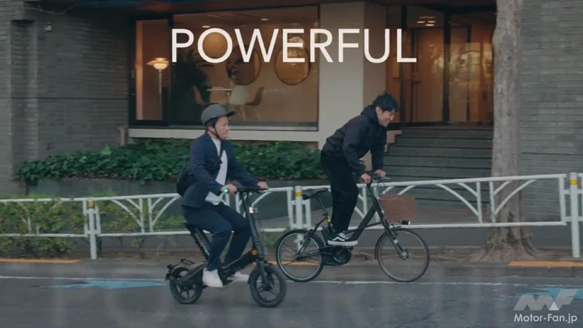 特徴は、「IP65防水」「折り畳み」「スマートフォルムにより屋内外を問わずあらゆる場所で保管が可能」という点である。IP65防水性能は雨の日でも車体をそのまま屋外に置ける安心感を提供。車体を折り畳むことで、玄関やオフィスの室内にスッキリ収められるコンパクト設計となっており、駐輪場がないオフィスにも持ち込め、省スペースで利便性を高めている。マンションやオフィスビル等の自転車ラックにも難なく駐輪することさえ可能だ。