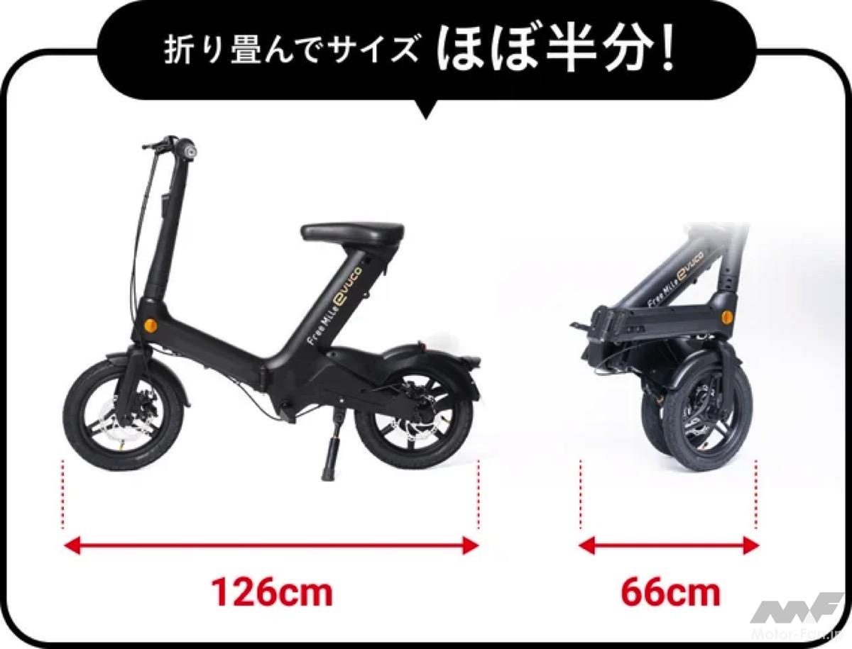 FreeMileは、「evuco(イブコ)」を、応援購入サービス「Makuake」にて2025年2月19日12時より先行販売を開始する。evucoは、16歳以上であれば免許不要・ヘルメット努力義務の特定小型原付に適合したフル電動自転車である。今回の先行販売では、最大25%OFFの割引リターンが用意されている。