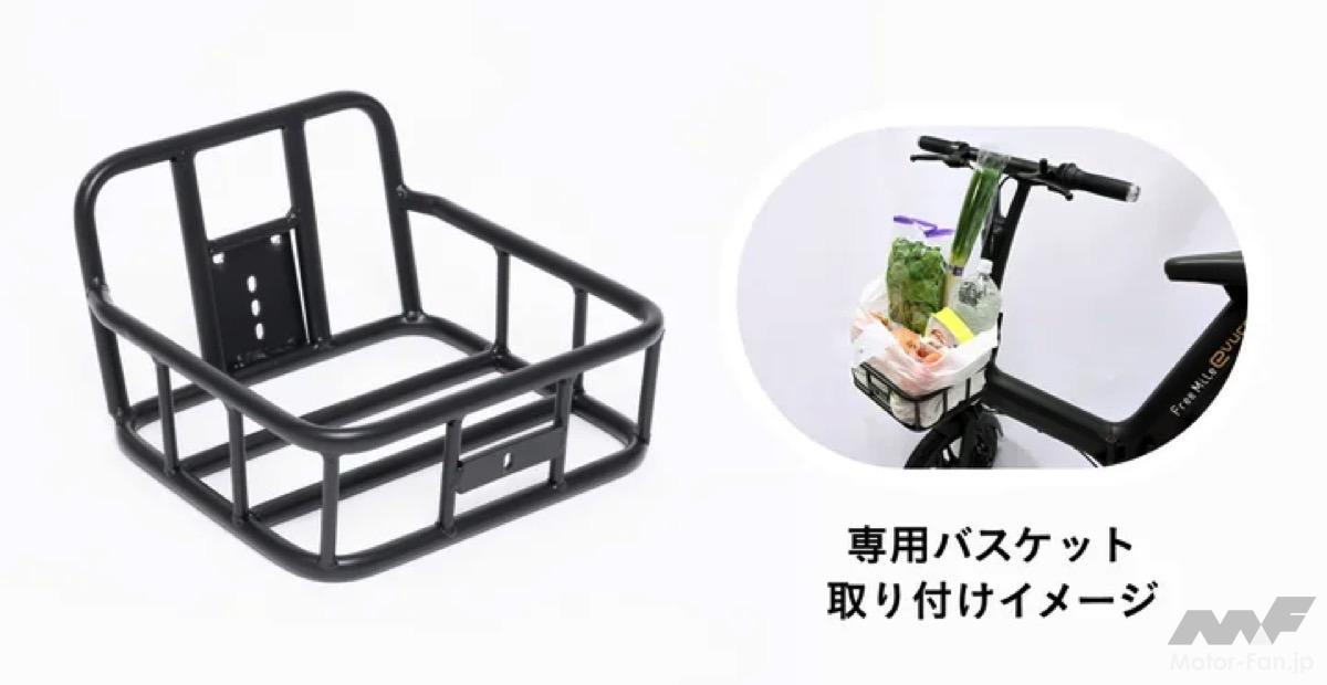 バッテリーは取り外し充電と直接充電の2way充電が可能であり、取り外し充電ではバッテリーを簡単に取り外せる設計で、車体を屋外に置いたまま充電可能である。直接充電では、本体に刺したまま充電ができるため、取り外す手間なく充電が完了する。さらに、通勤や買い物、お出かけに便利な専用バスケットをオプションで装着可能である。