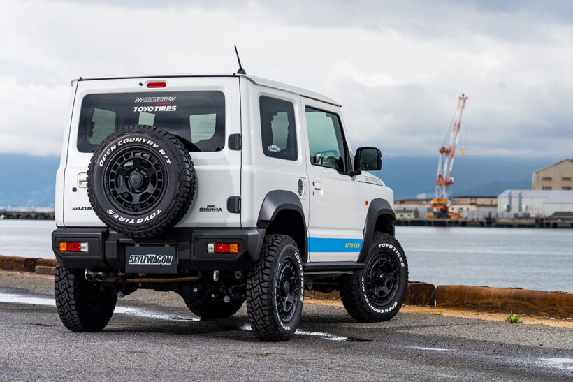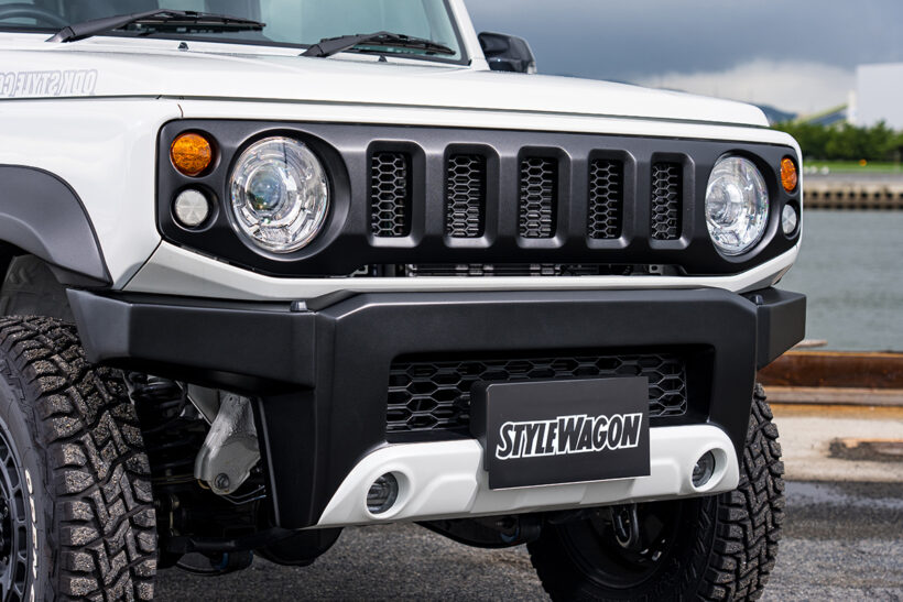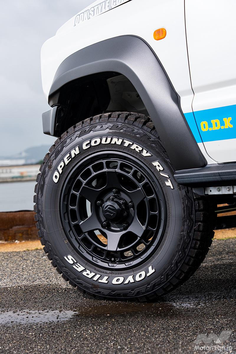 アイテム(カスタム) シエラなのにナローめ。O.D.Kスタイルの『ジムニーシエラ』はSUZUKIマークをレスしたJA22風!【写真・1枚目】 サイドをショート化したフロントバンパーは、冷却効果を狙い開口部は純正サイズに設計。マークレスグリルはJA22風のスタイルで、ウインカー下にはドライビングランプ対応のリフレクターも増設。 O.D.K STYLE【Jimny SIERRA】 O.D.K STYLE【Jimny SIERRA】 40㎜ワイドのオーバーフェンダーは、シエラ純正フェンダーでは大きすぎるとの声に応えたアイテム。装着に必要なパーツがセットになったキットも用意される。 現行ジムニーにJA11/22の小型テールランプを装着するためのアダプター。テールランプは別売。マットブラック、未塗装の2種設定。 30㎜リフトアップスプリングとショック延長アダプター、リア左延長ブレーキホースのセットは、14段調整アブソーバーと併用可。 クラシックなジムニー風を演出できるザ給油口と給油口ステッカー、給油口エプロンは手軽ながら効果満点。エプロンは長短2種設定。 デモカーが装着していたのはマッドヴァンスXのタイプS。車両はシエラだがあえてジムニー用サイズ。ここでナロー化が生きてくる。 この画像の記事を読む