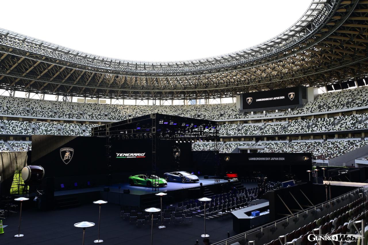 2024年1月29日、2020年の東京オリンピックに合わせて建設された国立競技場において「ランボルギーニ・デイ・ジャパン」が開催された。イベントでは「ランボルギーニ テメラリオ」のアジアプレミアを実施。日本、アジア太平洋地域、ヨーロッパからランボルギーニのオーナー、メディア、ファンら500名以上が集まり、ランボルギーニ3番目のHPEV(ハイパフォーマンスプラグインハイブリッド)として開発されたテメラリオの実車が初お披露目された。