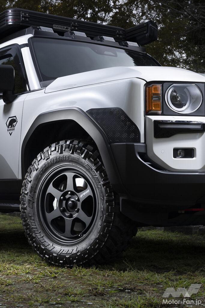 さらに特徴的なのが、ターゲットを絞り込んだそのサイズ設定。適合するのは64系ジムニー三兄弟とランクル系のみで、いわばほぼ専用設計だからマッチング性の良さも折り紙付き。L1のレーシングスピリッツと機能美、高い剛性に軽量性など、どこを取ってもランクル250に相応しいスペックだ。
