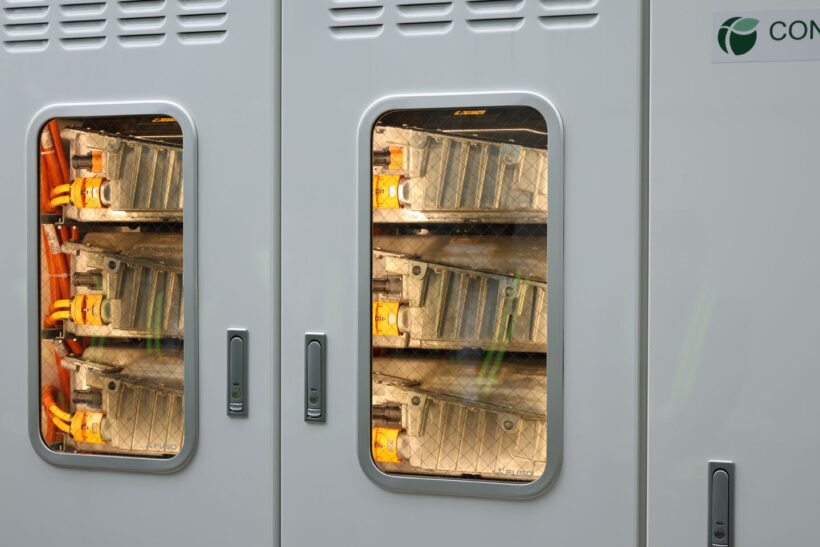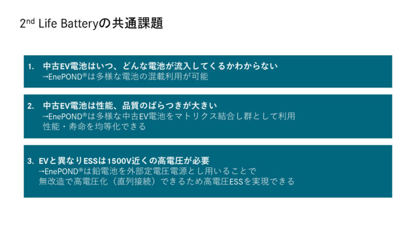 自動車業界速報 お疲れさま・・・じゃない! 初代eキャンターの使用済みバッテリーに捧げられた第2の道 ~三菱ふそう×CONNEXX×True 2 Materials の「バッテリー ライフ サイクル マネージメント」~【写真・26枚目】 現行eCANTER。 現行eCANTER。 現行eCANTER運転席。 BATTERY LIFECYCLE MANAGEMENT & Circular Economy概念図。 EnePOND外観。左から使用済みバッテリー庫、中央が鉛電池庫、右のボックスには制御・通信装置が収められている。 何やら窓の向こうに、使い古しのバッテリーが見える。 何段かに重ねられているようだ・・・ 右側も・・・ ふたを開ければこのとおり。デモンストレーションでは8段×2列に積み重ねられていた。 いかにも使い込んだ感のあるバッテリー。 ふたの窓と周囲の間接照明はデモンストレーション用の飾りだが、新しさの演出のためには製品版につけてもいいと思う。 三菱ふそうの説明資料からもういちど。 2nd Life Batteryの共通課題。これらのメリットと懸念事項の解決を両立させたEnePONDだ。 三菱ふそう・・・じゃなく、三菱自動車のトレディア(1982年)。 トレディア運転席。 トレディア EnePONDが管理する電気は、EnePONDから離れた場所にある急速充電器につなげられていた。いまはeCANTERの充電中。 充電中のeCANTER。 充電中のeCANTER。 充電コネクター。 急速充電器。 急速充電器。 ただいま充電中。 急速充電器の操作手順。 トータルマテリアルリカバリー(材料回収)概念図。 この画像の記事を読む