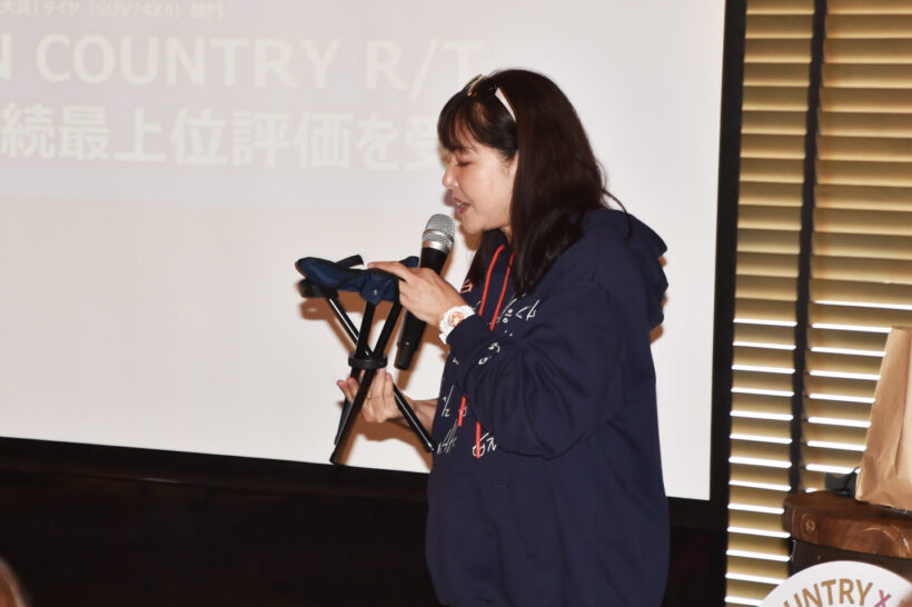 イベント トーヨータイヤと三菱がコラボしたミーティングイベント!#オプカン女子会×#デリカミニ女子会が初開催!!【写真・37枚目】 三菱が展示した超新型デリカミニとデリ丸。。 全7モデルの「#オプカン」を展示したトーヨータイヤブース。 オフロードユースや全天候性を謳う「#オプカン」シリーズにあって、街乗りやファッション性をアピールH/TIIは新境地のラインナップだ。 大いに盛り上がった「#オプカン女子」と「#デリカミニ女子」のコラボ女子会。次回開催も期待される。 超新型デリカミニも展示された。 会場には多数のデリカミニが集まった。 「#オプカン女子会」×「#デリカミニ女子会」in南アルプス市。 イベント参加者のデリカミニ(初代)。 イベント会場となったのは南アルプス市の体験型複合施設「fumotto」。富士山と南アルプスを望む抜群のロケーションだ。 イベントの屋内会場の様子。MCは榊原夕子さんが務め、オープニングでは「#オプカン」「#オプカン女子」の紹介、デリカミニと「#デリカミニ女子」の紹介などが行なわれた。 トークショーの先陣を切った「#オプカン女子」部長の竹岡圭さん。 竹岡圭さんのトークショーはデリカミニや「#オプカン」、竹岡圭さん自身にまつわるクイズ形式。ちなみにこの出題は「一番人気の"ご当地デリ丸。"は?」というもので、答えは宮城県の伊達政宗デリ丸。だった。 回答はホワイトボード記述式で、テーブルごとの正答数を競う形。 テーブルに回答を聞いて回る竹岡圭さん。 景品には折り畳みミニチェアなど、竹岡圭さん提供のアイテムも。 オリジナルタンブラーを作るワークショップ。 デコレーション用に様々なデザインのシールが用意された。 ワークショップを楽しむ「#オプカン女子」&「#デリカミニ女子」のみなさん。 ゲストの玉置侑里子さん。 ZIP-FMとトーヨータイヤのコラボイベントの告知も行なわれた。 最後の屋内コンテンツとして会場を盛り上げた「チャラン・ポ・ランタン」。『「#オプカン」の歌』の制作し、先々のライブで披露することを宣言した。 ランチタイムの乾杯の音頭は「#オプカン女子」部長の竹岡圭さん。 ランチは地物素材のオシャレプレート。 フリードリンクは多彩なメニューが用意された。 イベントオリジナルのラテアート。 大小のデリ丸。がズラリと並ぶオーナー車の超新型デリカミニ。 「#オプカン女子」の三菱デリカD:5とスズキ・ジムニー。 スズキ・ジムニー(シエラ含む)は今回、デリカミニに次ぐ参加台数。トヨタ・ハイエースやトヨタ・ランドクルーザーなどの参加車両の姿も。 竹岡圭さんの三菱トライトン・クロスカントリーラリー参戦車。ちなみに愛称は"ももトン(↑)"。語尾は上がるらしい。 ピンクデリ丸。一般には頒布されない限定品。竹岡圭さん、試作品、三菱の元にある3体のみとか。 装着される「#オプカン」はオープンカントリーR/Tトレイル。サイズは265/70R17。 三菱が展示した超新型デリカミニとデリ丸。。デリカミニには「#オプカン」を装着。 オンロード用の「#オプカン」、オープンカントリーH/T IIのホワイトリボンタイヤを装着。サイズは165/60R15。 玉置侑里子さんの愛車、スズキ・ハスラー。 タイヤは195/80R15サイズのオープンカントリーR/T、ホワイトレター。 「チャラン・ポ・ランタン」の愛車、ルノー・カングー。 タイヤはオープンカントリーA/T EX、ホワイトレターを装着。 トーヨータイヤのデモカー、ルノー・カングー「#オプカンGOO」はオープンカントリーH/Tを装着。 バンパーガードやルーフキャリアなど、デリカD:5で定番のカスタムはデリカミニにもよく似合う。 リヤゲートラダーやマッドフラップもお馴染みの装備。やはりタフギア系カスタムが主流のようだ。 竹岡圭さんとデカ丸。を囲んで記念撮影。 こちらは「#オプカン女子」の記念撮影。 トーヨータイヤのデモカー、ルノー・カングー「#オプカンGOO」はオープンカントリーH/Tを装着。 オープンカントリーH/T IIホワイトリボン。 トーヨータイヤブース。 トーヨータイヤブースのオープンカントリーラインナップ。 会場のゲート。 竹岡圭さんの三菱トライトン・クロスカントリーラリー車「ももトン」。 三菱が展示した超新型デリカミニ。 三菱が展示した超新型デリカミニ。人気のサンドベージュと、ボディカラーとお揃いのデリ丸。。 巨大なデリ丸。、デカ丸。。 三菱が展示した超新型デリカミニ。 デカ丸。とデリカミニとトライトン。 三菱が展示した超新型デリカミニ。 屋内会場の様子。 ゲスト&司会者ブース。 ドリンクブースにもイベントのデコレーション。 ワークショップ用のtんぶらー。 ワークショップ用のシール。 会場のデコレーション。 ワークショップ用のシールは実に多彩なデザインが用意された。 会場のデコレーション。 外会場の参加車両。 エントリー車のデリカミニとデリ丸。。 ダッシュボードには多数のデリカミニミニカーが並べられていた。 ピンクデリ丸。。 会場の様子。 大小揃う