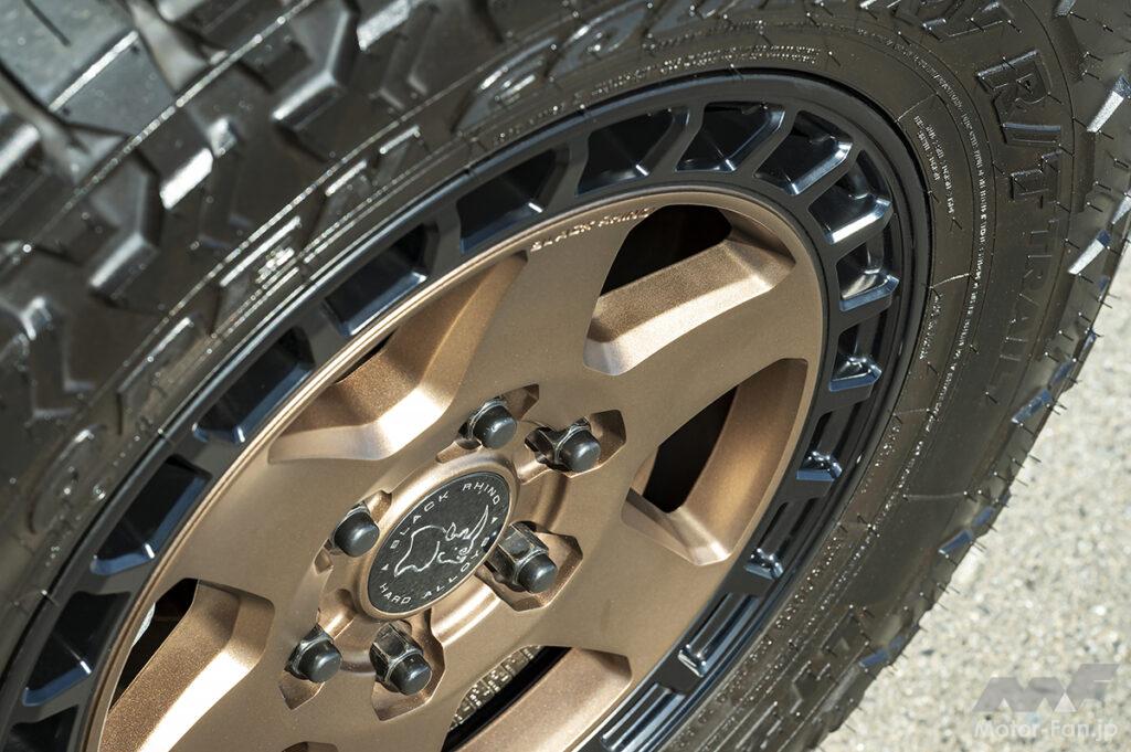 まるで軍用車のそれを思わせる過激でタフネスなデザインモデルで、アメリカ本国でもシーンの中心に君臨し続けているホイールブランド、ブラックライノ。そんなブラックライノがランドクルーザー250のためにあえてサイズ追加したのがこのBR022バハリ。純正フェンダーとのマッチングを意識した絶妙なオフセット設計で、250のさらなるオフローダー化を強烈にサポートしてくれる。