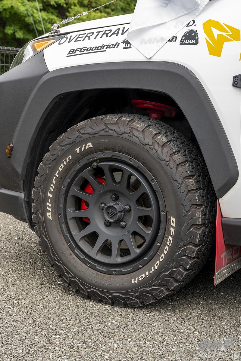 オフ会 人気の「GORIGORIブラック塗装」って? 無骨に仕立てた『RAV4』にみる黒の使い方【写真・2枚目】 TOYOTA・RAV4/令和5年式 TOYOTA・RAV4/令和5年式 OWNER くりこう さん バンパー、グリルまわり、ボンネット先端部まで、DIYによるGORIGORIブラック調のチッピング塗装で統一。 Aピラーやドアフレームのセンターパネル部分にはTOPO柄を投入。マット基調の中でもメリハリがつけられている。 ホイールはデルタフォースオーバル、タイヤはBFグッドリッチのKO2をセレクト。オフパケ2のダンパー色に合わせてキャリパーもレッド塗装仕上げに。 この画像の記事を読む