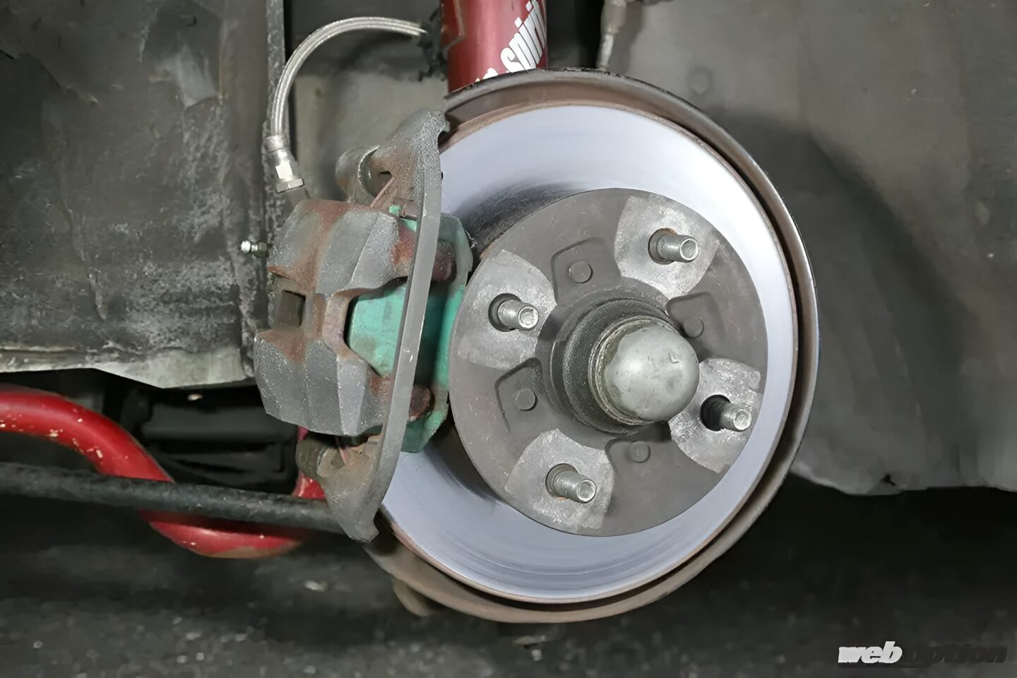峠レベルを楽しく走る程度ならブレーキはパッド交換のみで問題ないという。しかしながら、街乗りとは比較にならない負荷がかかることは事実。そこでブレーキパッドは、プロジェクトミューの適正温度が高いMAX900を装備している。