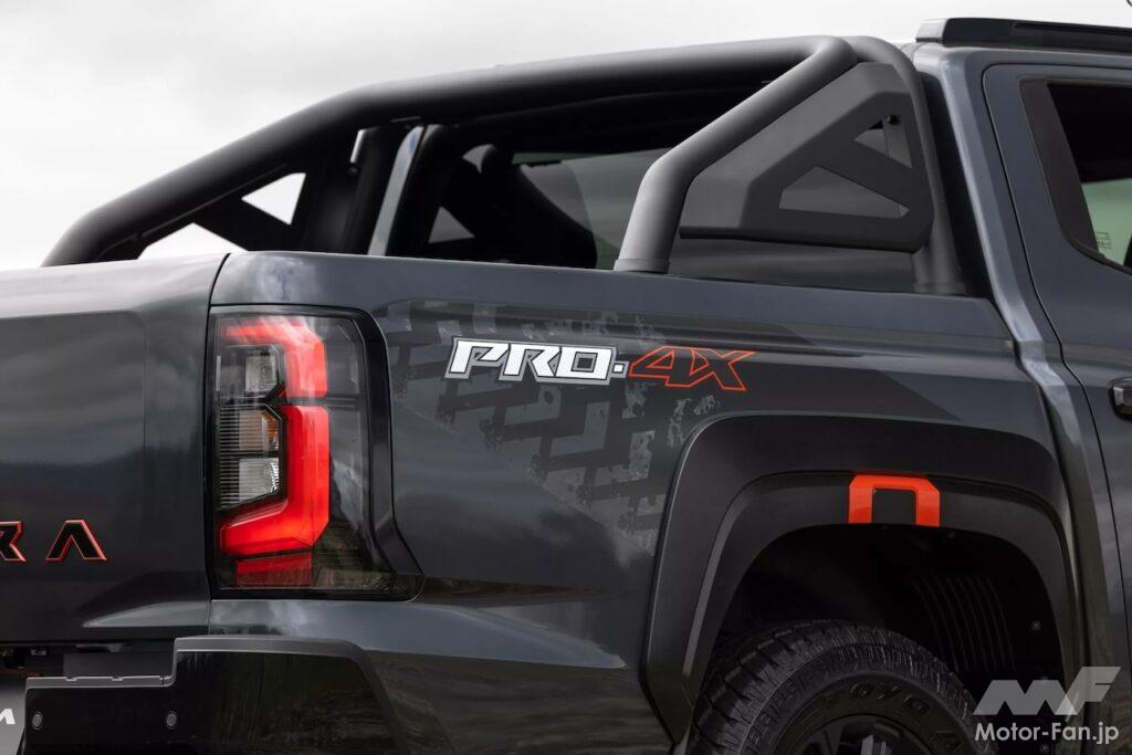今回は、ミドルグレードのST-Xと最上級グレードのPro-4Xを含む複数のトリムを同時発表。Pro-4Xは、ラバレッドのアクセント、フレアアーチ、スポーツバー、ダークカラーのアルミホイールを備え、その存在感を大胆に表現している。
