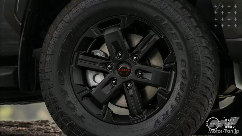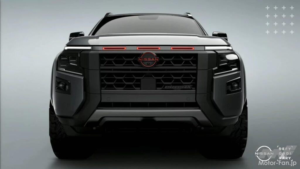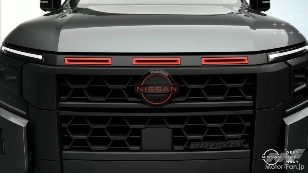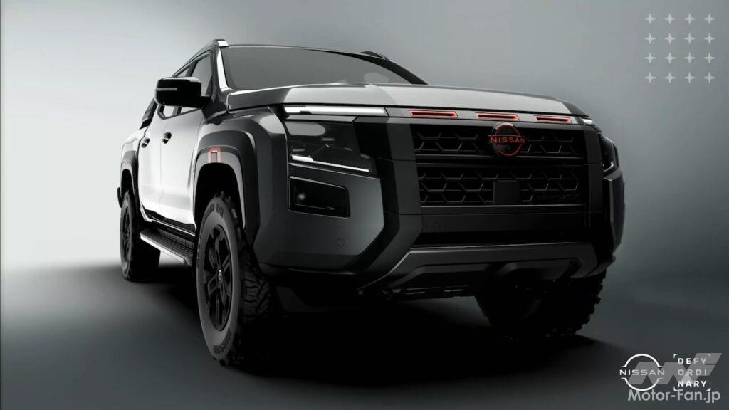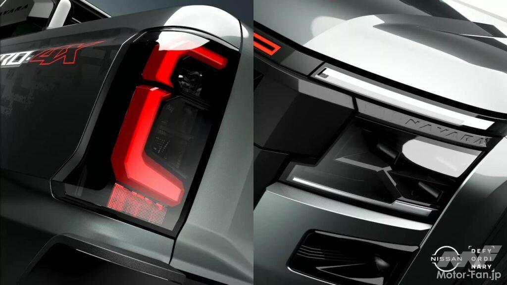キャビンと側面の板金仕上げは、2023年に発表された三菱トライトンからほぼ継承されているが、テールランプには日産専用のLEDグラフィックが施されている。