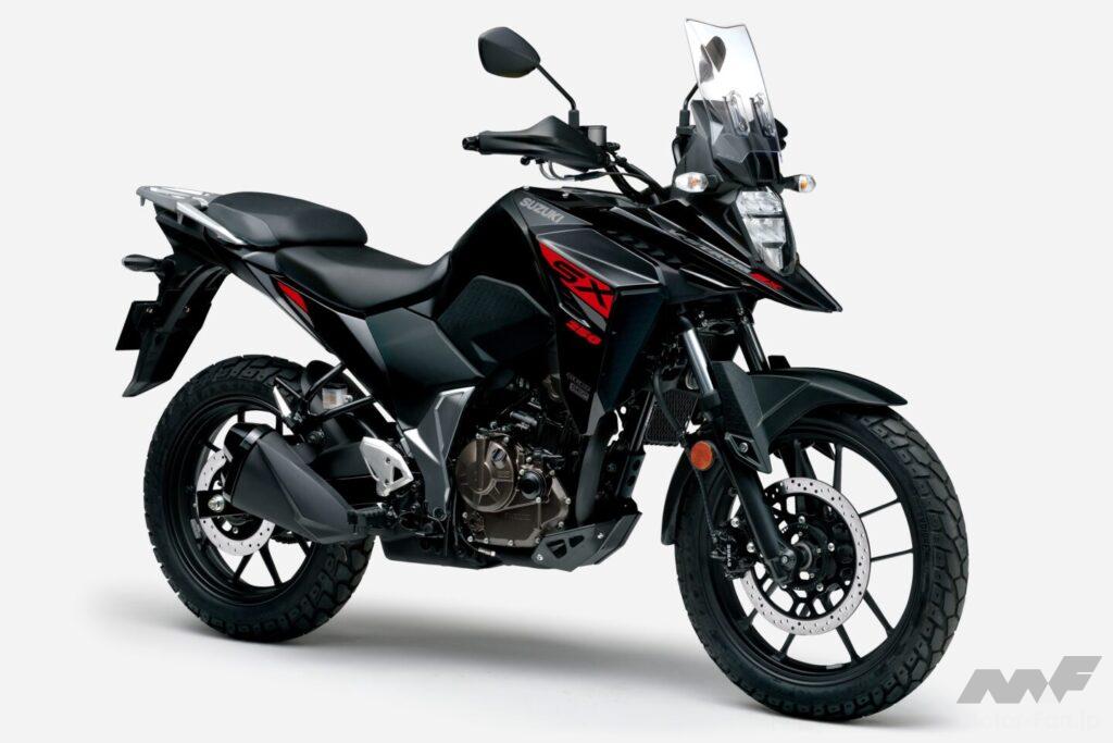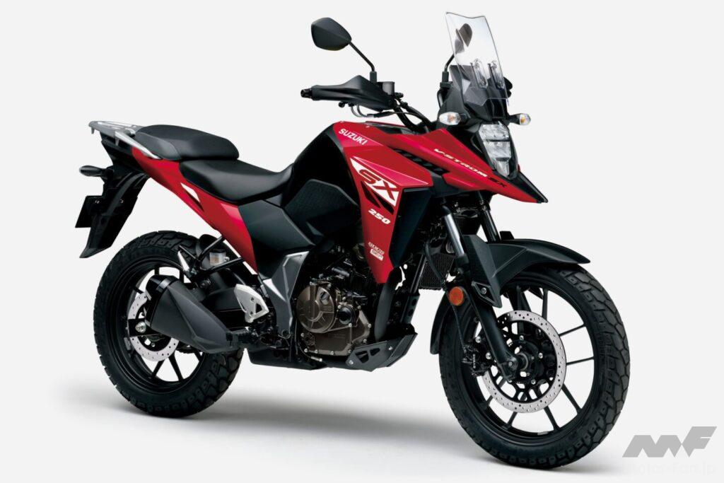 Vストローム250SXは、ソノマレッドメタリック(QSB)、チャンピオンイエローNo.2(YU1)、グラススパークルブラック(YVB)の3色を展開。