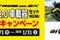 対象期間は2025年12月1日(月)~2026年1月31日(土)である。対象車種は2023~2025年モデルの国内認定新車Vストローム250SX。海外向け輸入車は対象外である。