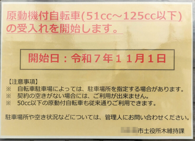 バイクの知識 「新基準原付は50cc用の駐輪場を利用可能できますか?」 東京近郊の千葉県某駅周辺では2025年11月1日に受け入れ開始【写真・2枚目】 oppo_2 oppo_2 oppo_2 oppo_2 この画像の記事を読む