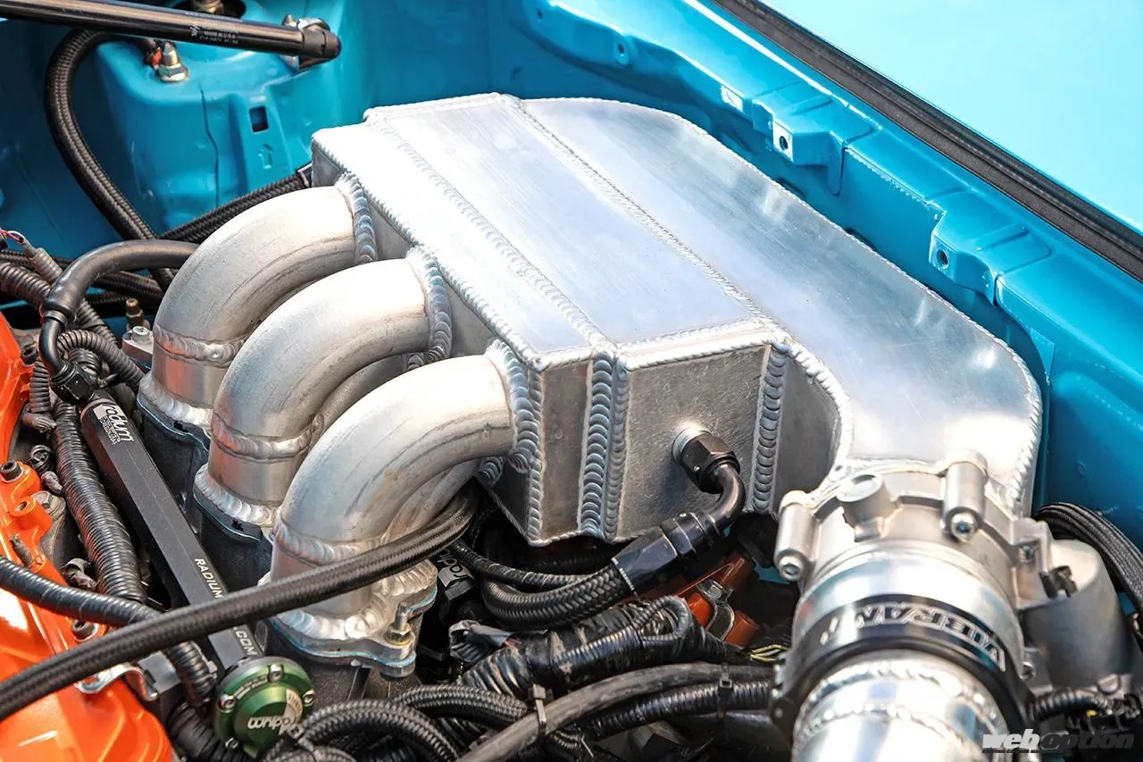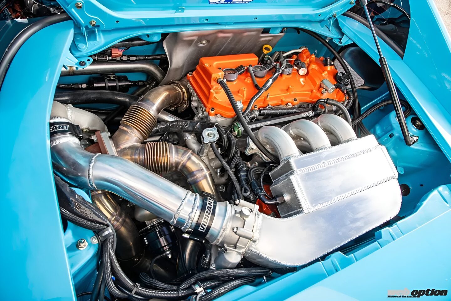 北米仕様のSW20が積んだエンジンは2.2L自然吸気の5S-FE型と、2.0Lターボの3S-GTE型の直列4気筒。だが、ダンのMR2にはアメリカで販売されているSUVのハイランダーから、2GR-FE型V6エンジンを移植。Vバンク間にはFC Autolabでワンオフ製作された水冷インタークーラー内蔵インテークマニホールドを備える。