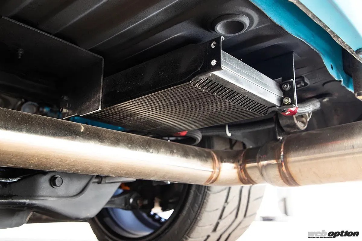 トランスミッションはMR2のターボモデルに使われる、純正のE153という5速MTを使用し、高出力&高トルクに対応する強化クラッチと強化アクスルシャフトも使用されている。