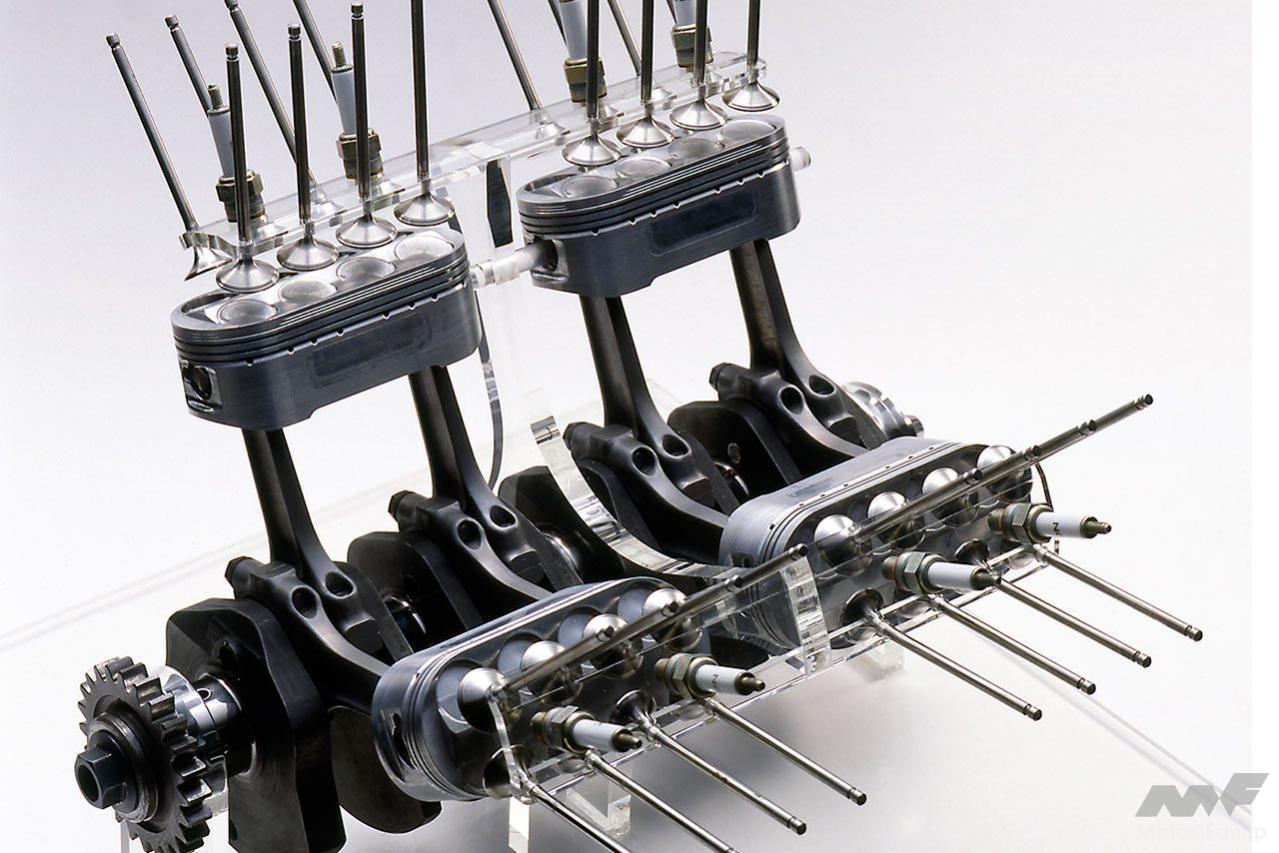 そこで、ピストンとバルブは従来のまま、バルブの数を増やすことで、バルブ面積を増やそうという試みが行なわれた時期もあったわけだが、結局は古くから存在している4バルブに落ち着いている(5バルブは一部で成功例も見られた)。最も重要なバルブ開口面積(カーテン面積)は隣接するバルブが増えるほど、無効な面積も増え、4つ以上にバルブの数を増やしても、労力に見合った効果が得られることはなかったのである。