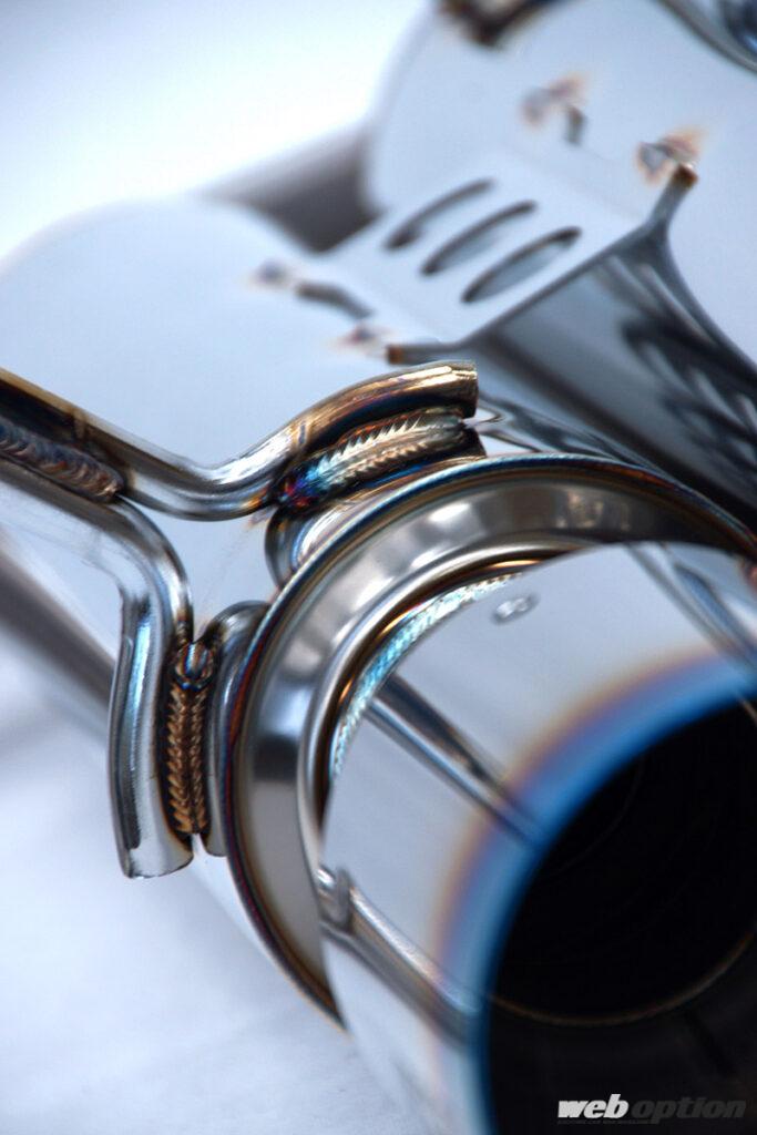 性能と音質のみならず、見た目にもこだわったというHKS。メインマフラーの溶接にはTIG溶接を多用し、チタンテールには美しいグラデーションを実現する焼き入れ処理が施されているが、これらの作業は全て職人の手作業というから恐れ入る。