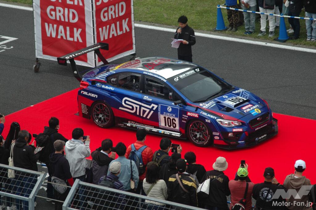 スバルのニュルブルクリンク24時間耐久レースへの挑戦は2008年から始まり、2011年・2012年、2015年・2016年、2018年・2019年と三度の連覇を成し遂げている。展示車両の2016年参戦車は山内英輝(日本)、マルセル・ラッセー(ドイツ)、カルロ・ヴァン・ダム(オランダ)、ティム・シュリック(ドイツ)の4名のドライバーの手により総合20位、SP3Tクラス(2000cc以下のターボ車)1位という結果を残している。