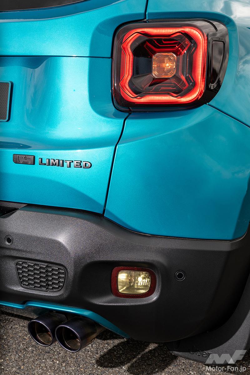 ユーザーカー 限定車「BIKINIエディション」の進化系!? すべてが夏色に染まった『JEEP・レネゲード』がオシャレすぎ【写真・3枚目】 ジープ・レネゲード【2021年式】 ジープ・レネゲード 【2021年式】 ボンネットやルーフにはカーボン柄のプロテクションフィルムを貼付し、フード先端には3Dプリンターで製作したワンオフのエンブレムもあしらう。 実はサイドミラーも右側はターコイズブルー、左側はブラックカーボンとアンシメトリーなカラーコーディネイトを施している。 テールレンズにはスモーク塗装を施し、バックフォグはレンズをクリアカラーに変更して左右バランスの均一化を図っている。 ワンオフマフラーだけでは物足りないということで、ステンレス配管を用いたカーボンインテークを組み合わせることで吸排気まわりのクオリティも高める。 OWNER BIKINIくんさん この画像の記事を読む