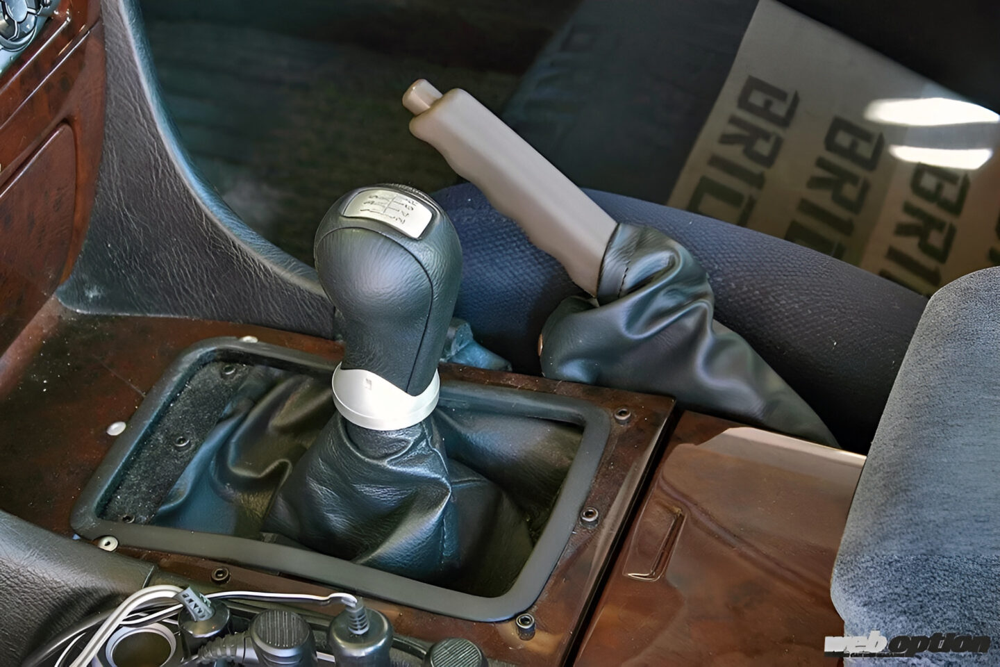 室内側は何とも自然な出来栄え。まるでY33にMTの設定があったかのようだ。ちなみにMT化にかかったコストは、パーツ代+工賃で約100万円。Y33ターボが中古車で40〜60万円ということを考えると割高な感じもするが、アリストのMT化以上に目立つことは間違いなし! 実際、このY33もゼロヨン会場では注目の的だそうだ。