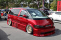 今では貴重なクルマであるTCRエスティマ。オーナーのアクオスさんは「26年乗っている」という! ギャルソンのエアロ、リアには大型のオーバル左右出しマフラーなど„当時仕様"でセットアップしたのが特徴だ。