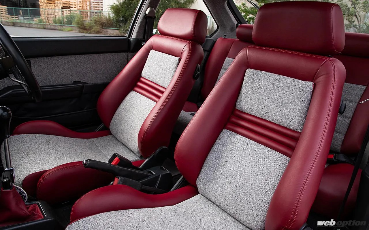 80年代風味のビジュアルと、現代も一線級の平成スペックの注入。内装もクリーンに張り替えられ、隙なく上質なオリジナル・インテRを完成させている。