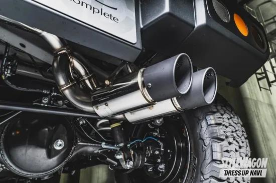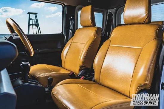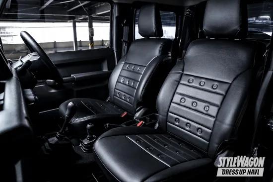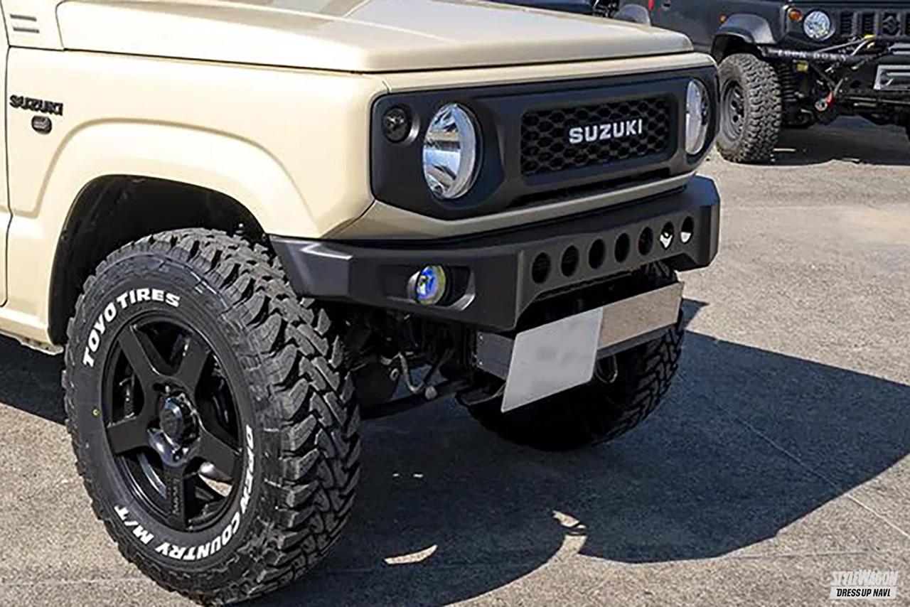 今回紹介するデモカーのコンセプトは、「ニューノーマル」。街中を安心して乗れるスタイリングの提案として、あえて純正然としたスタイリングを構築。フロントバンパーは純正の雰囲気を残しながらショート化を施し、その下に別売のスキッドプレートを装備。リアバンパーはあえて純正のままとしており、フロントバンパーもそれを前提として設計しているため、フロントまわりのモディファイだけでカッコ良さが生きるスタイル。さらに同社の人気アイテムであるフェイスグリルエスジェイを装着して、懐かしい雰囲気を醸し出す。このように少ない手数で大きな効果が得られるコーディネイトは、ビギナーとしてはうれしい選択肢のひとつになるはずだ。