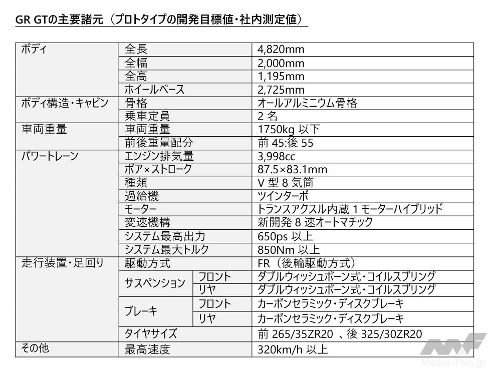 「圧倒的なパフォーマンスを求めた新しいフラッグシップモデル」の位置づけで、「『モータースポーツを起点としたもっといいクルマづくり』を、さらに深化させたGRのフラッグシップスポーツカー」と謳う。
