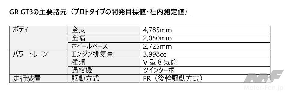 市販車をベースとするカスタマーモータースポーツのトップカテゴリーのFIA GT3規格に沿い、勝ちたいひとに選ばれる、誰が載っても乗りやすいクルマをめざしてもいるという。