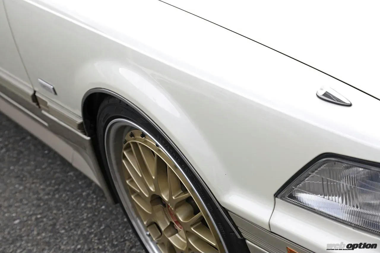 フェンダーはソアラ乗りでも気付きにくい5mm叩き出し仕様だ。なぜ5mmかと言うと、純正のフェンダーモール装着への拘りを貫くため。このような細かなメイキングの積み重ねが、目利きの走り屋をも唸らせるオーラを生むのだ。