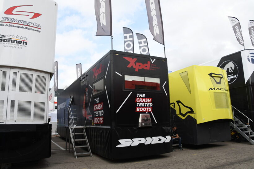 バイクレース 「ストレートスピード向上のためにレザースーツを調整する」インタビュー:SPIDIのMotoGPレーシング・サービス【写真・2枚目】 サービス・トラック内にはレザースーツが並ぶ©Eri Ito ヨーロッパのMotoGPでは、このサービス・トラック内でレーシング・サービスが行われる。ヨーロッパは陸続きなので、このサービス・トラックが各GPを移動する©Eri Ito Moto2ライダーが使用するブーツ(右)は、基本的に市販製品と同じ(左)。デザインがライダーのオリジナル。また、エアロダイナミクスの観点からスライダーが取り外されている©Eri Ito トップスピードの改善を目指し、タイトに調整したというゴンザレスのレザースーツ。しかし、変更箇所は見た目にはわからないほどわずかなもの©Eri Ito SPIDIのエアバッグ開発とレーシング・サービスを担当するジュリオ・タマロさん。2023年よりSPIDI Sportで勤務を開始。電子式エアバッグシステムの開発に従事し、現在はプロジェクトマネージャーを務めている。©Eri Ito この画像の記事を読む