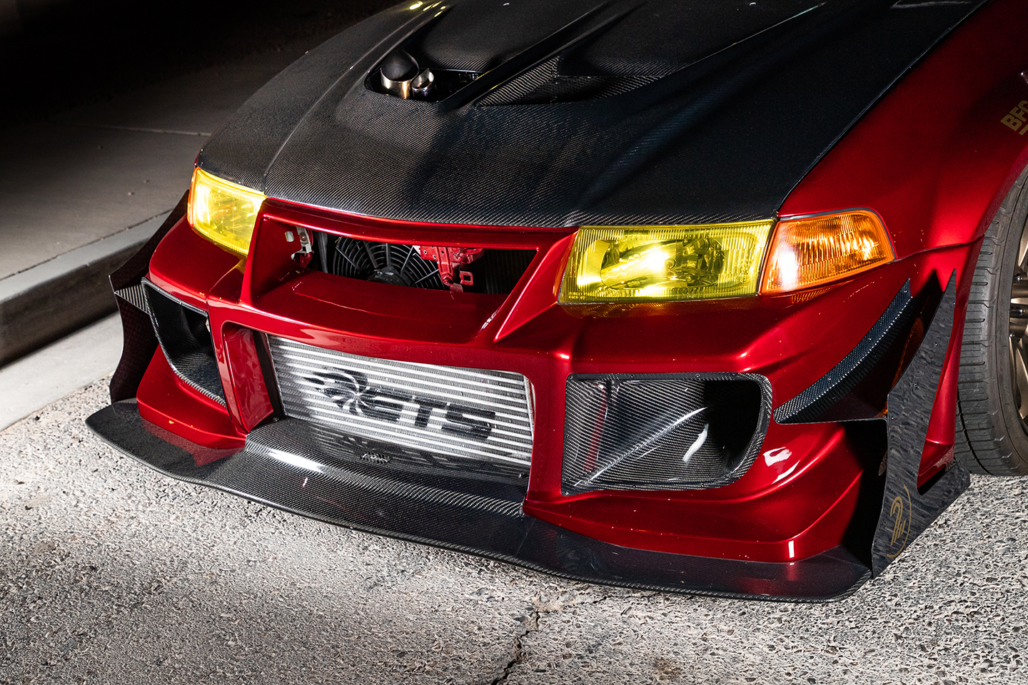 もはやバージョンいくつなのか本人も覚えていない現在の2ドアエボは、ランエボIXのブロックをベースに2.1L化したTrevtec製4G63型レーシングユニットを搭載。これは、CNC加工したレースヘッドやManleyの10.5:1ピストン&94mmクランクなどによって構築されている。
