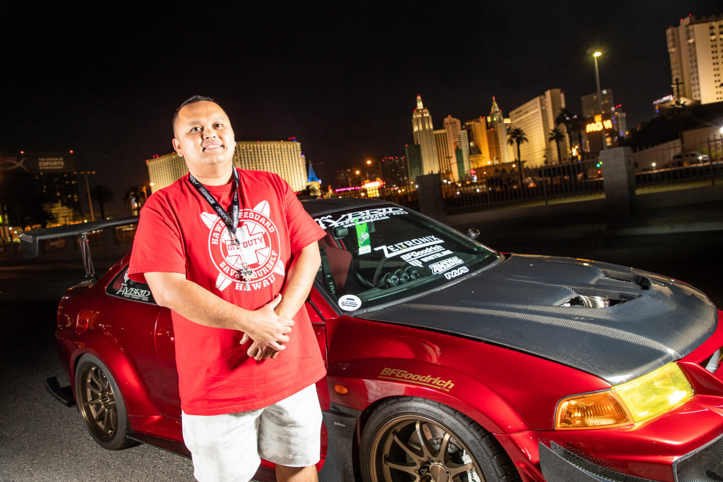 「ミラージュのパーツはドアとガラス、カーペットくらいかな(笑)」と言うほど、まさにWho am I?な大変貌を遂げた2ドアエボ。目標だったゼロヨンのタイムはストリートタイヤで10秒4、終速233.3km/hを達成し、アーチーの地元であるラスベガスで開催された2014年のSEMAでショーデビュー。はじめはクルマ好きではなかった男は、全米のカーガイ達から「Crazy!」と大賛辞を浴びたのであった。