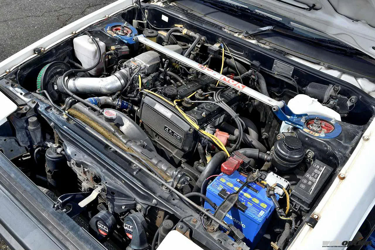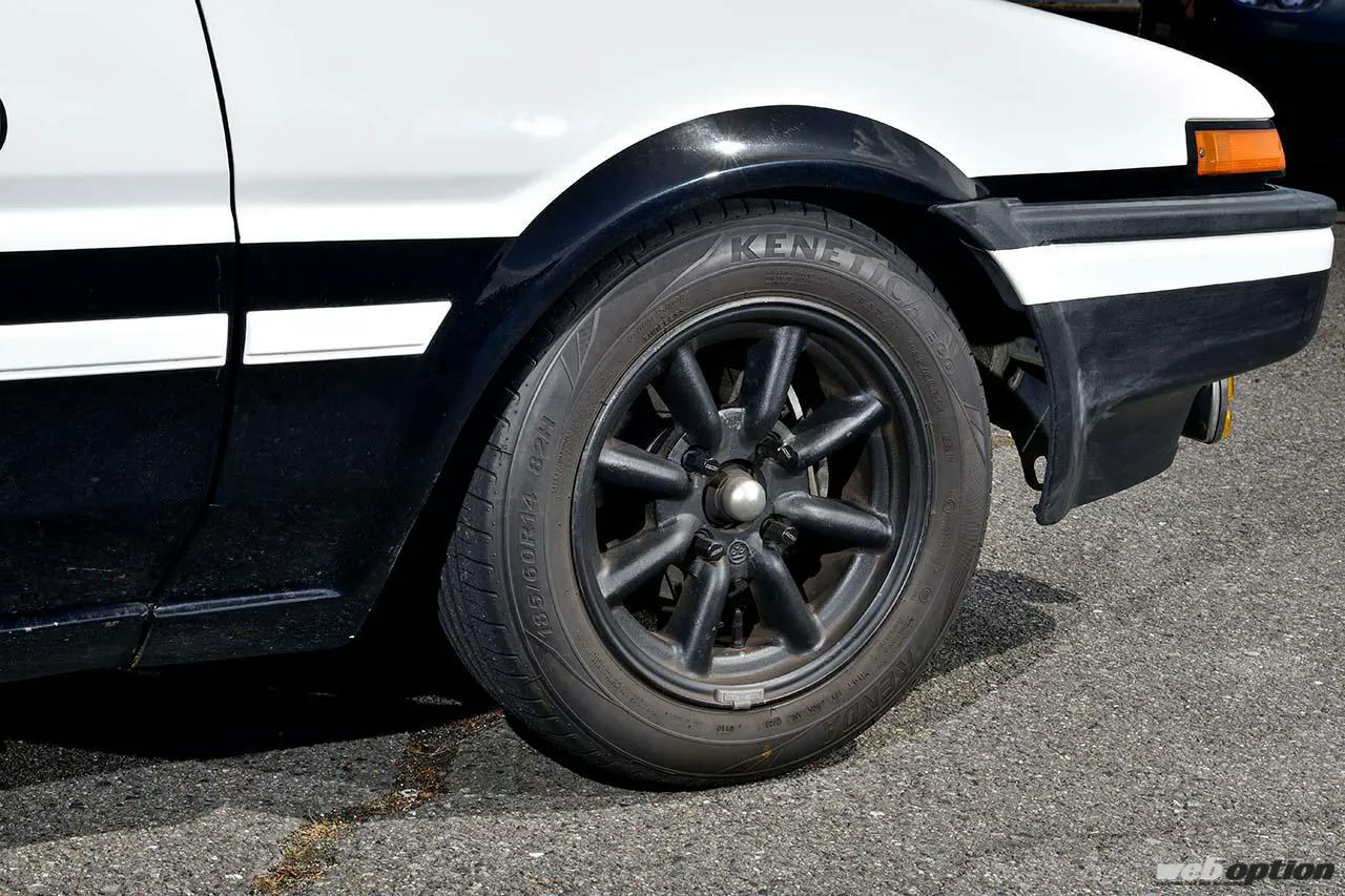 瀧柳さん拘りは、16バルブの4A-Gエンジン。オーバーレブやピストン焼付きのトラブル毎に載せ換えを行ない、現在搭載しているのが3基目。知り合いの某レーサーが組んだTRDピストン、メーカー不明ハイカム入りのファインチューン仕様で、排気系は不明タコ足+フジツボマフラーという構成だ。