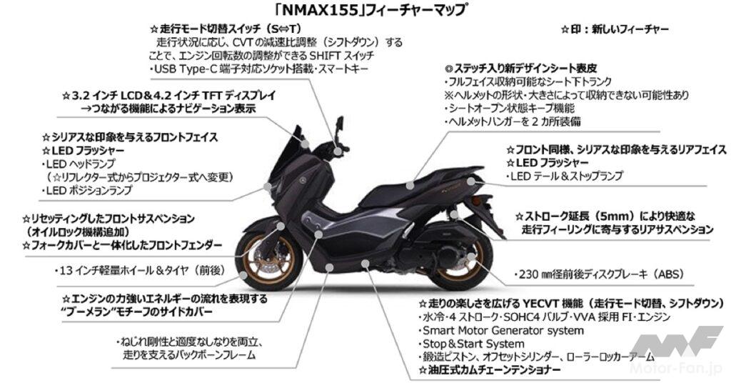 ヤマハ発動機は、軽二輪スクーター「NMAX155 ABS」の2025年モデルを3月21日に発売する。このモデルには、水冷155ccの”BLUE CORE”エンジンと、新たに電子制御CVT「YECVT」を搭載し、ライダーの操作に応じて変速比を調整することで、マニュアルミッション車のような走行感覚を実現している。また、サスペンションのセッティングを最適化し、乗り心地とギャップ吸収性を向上させた。スタイリングも刷新され、力強さと安定感を表現するデザインとなっている。さらに、二画面構成の新型ディスプレイやスマートフォン連携機能を搭載し、利便性を高めている。カラーリングは、マットダークレディッシュグレー、ブラック、ライトブルーの3色を展開する。「NMAX155 ABS」は、欧州や日本で人気の「MAXシリーズ」のDNAを受け継ぎ、高速道路も走行可能な155ccエンジンによるスポーティな走りを、コンパクトなボディに凝縮したモデルである。