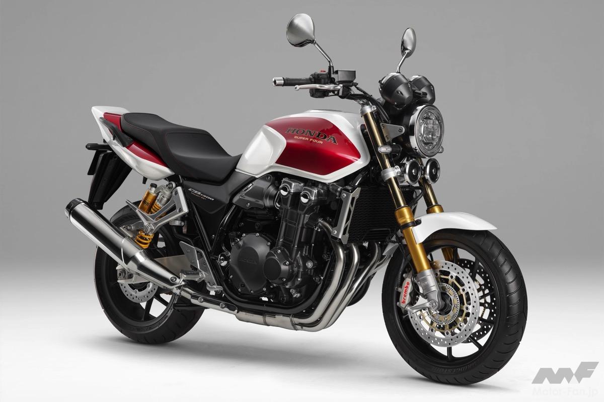 ホンダは、CB1300シリーズの最終モデルとして、「CB1300 SUPER FOUR Final Edition」「CB1300 SUPER BOL D’OR Final Edition」「CB1300 SUPER FOUR SP Final Edition」「CB1300 SUPER BOL D’OR SP Final Edition」を発表し、2月28日(金)にHonda Dreamより発売する。これらのモデルは、1992年に登場した初代「CB1000 SUPER FOUR」の系譜を継ぐ現行CB1300シリーズの最終モデルとなる。特徴的な点として、初代モデルをイメージしたカラーリングが施され、燃料タンク上部には“Final Edition”のステッカーが配されている。また、ゴールドカラーのドライブチェーンやシルバーカラーのスイングアーム、トップブリッジ、ステアリングステムが採用され、特別感を演出している。販売計画台数は国内年間でシリーズ合計3,400台を予定しており、メーカー希望小売価格は「CB1300 SUPER FOUR Final Edition」が172万7,000円、「CB1300 SUPER BOL D’OR Final Edition」が183万7,000円、「CB1300 SUPER FOUR SP Final Edition」が210万1,000円、「CB1300 SUPER BOL D’OR SP Final Edition」が221万1,000円となっている。