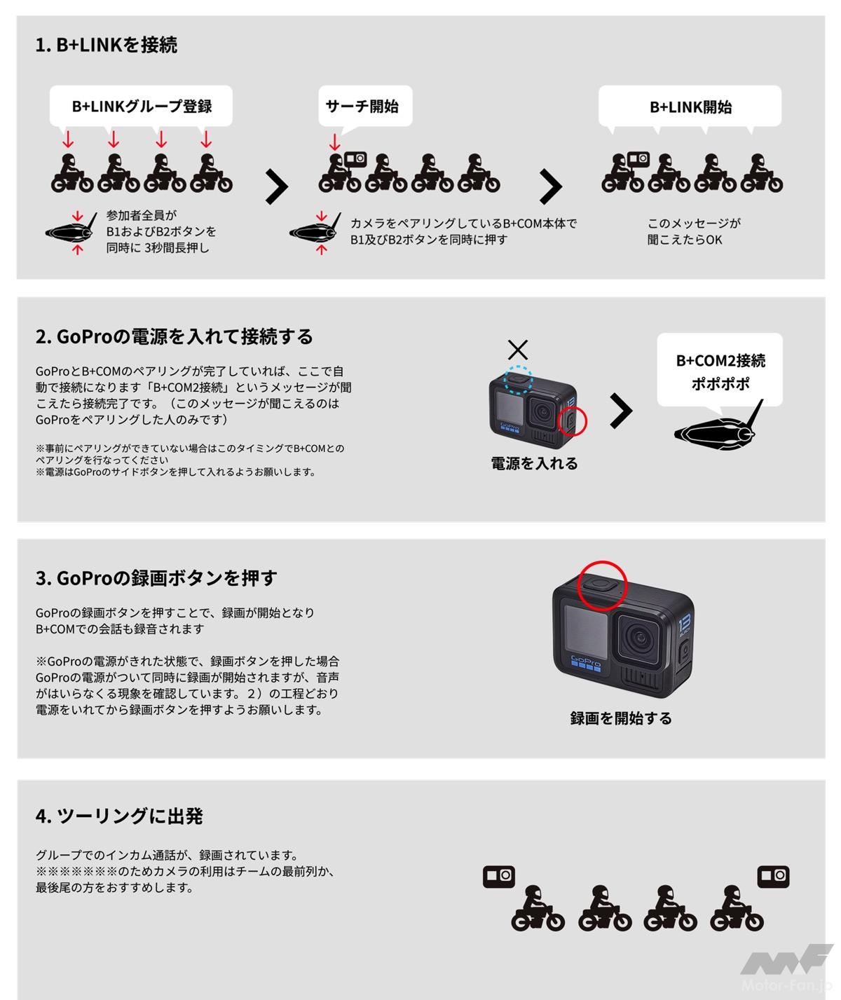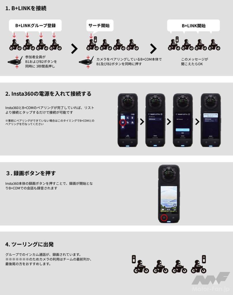 サイン・ハウスは、バイク用Bluetoothインカム「B+COM」シリーズ(SB6XR、SX1、ONE、SB6X)が、最新のアクションカメラであるInsta360 X4およびGoPro HERO13と連携し、インカム通話の音声をアクションカメラの映像に追加できることを発表した。これにより、最大4人までの通話音声を録画映像に組み込むことが可能となる。ただし、ユニバーサル接続となるため、通話品質の低下が生じる場合がある。また、音声が正しく録音されていることを確認してから走行を開始することが推奨される。詳細な接続方法やソフトウェアアップデートに関する情報は、サイン・ハウスの公式WEBサイトで確認できる。