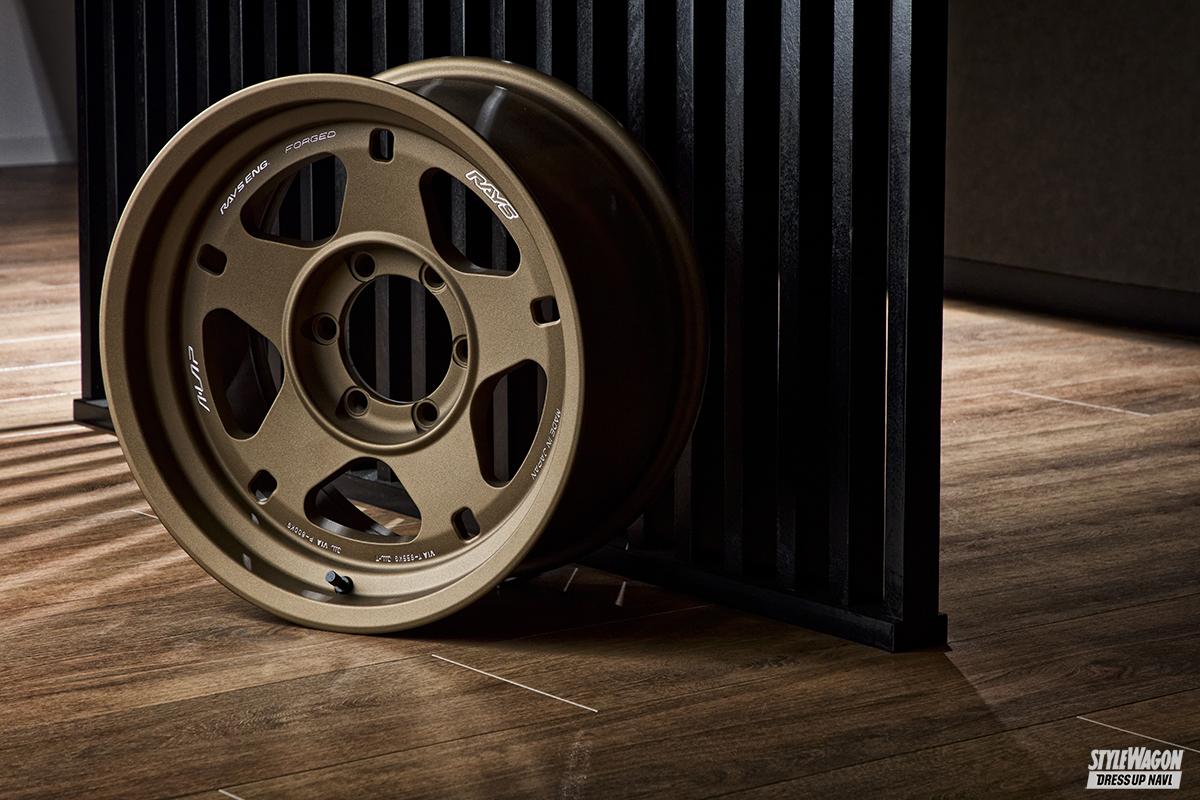 可能な限りの軽さにこだわったレイズが放つ鍛造ブランド、Aラップ。その2024年モデルとしてデビューした05Xは、ヨンクの本場である北米市場を意識して開発された頑強なタフネスフォージドだ。最大の特徴は、北米市場でマストとされる耐荷重、2600lbsをクリアする設計を採用したこと。これはキログラムに換算すると1000㎏以上になる数値で、重量級ボディを持つハイラックスにオーバーランド架装をプラスしたとしても余裕で耐えられる強度ということだ。