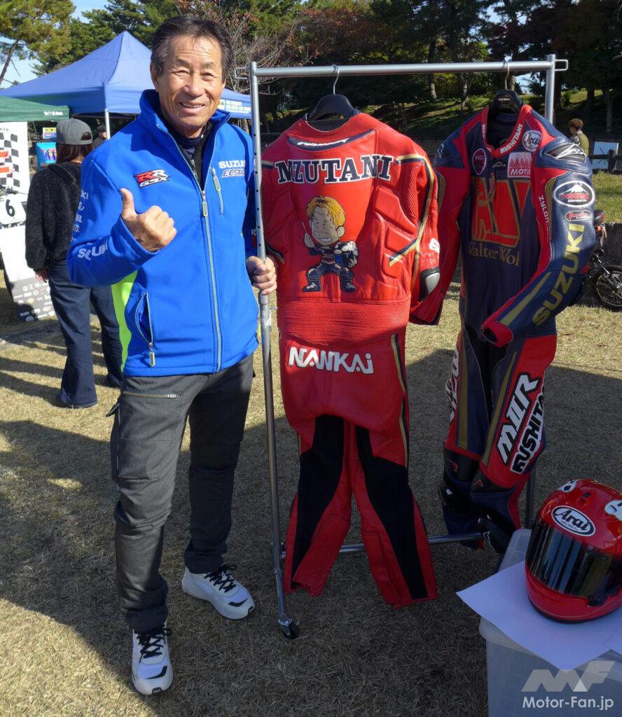 さらに、スペシャルゲストとして水谷勝選手が招かれたこともあって、実際に彼が乗っていた1982年全日本500チャンピオンとなったスズキRGB500Mk7、2005年鈴鹿8耐に参戦した際に使用したウォルターウルフカラーのGSX-R1000が特別展示された。