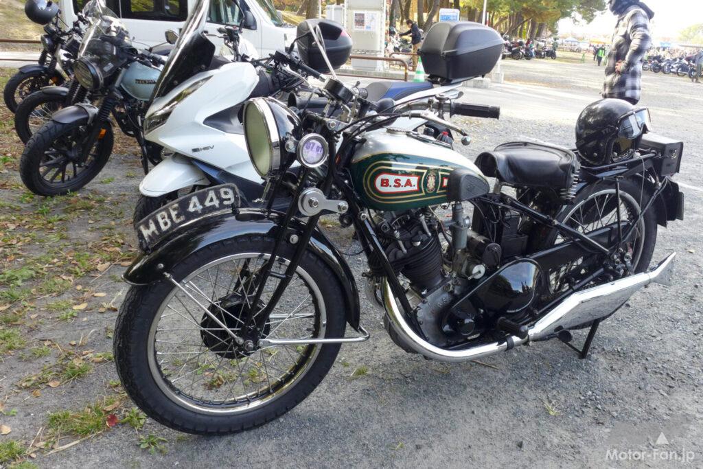 ホンダやヤマハ、スズキ、カワサキなどの4大メーカーの旧車のほか、キャブトンや陸王、メグロ、IMC(伊藤機関工業)、山口モーターなど、他のイベントでは滅多にお目にかかれない1950~60年代の希少なマシンがエントリーしていた他、動態保存されているだけでも貴重な100年前のBSAやダグラス、サンビーム、ハーレーなどの参加もあった。そして、驚くべきことにその多くにナンバーが付いていたのである。